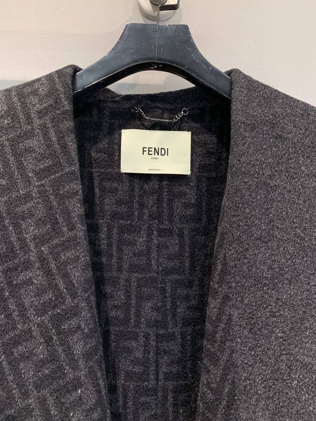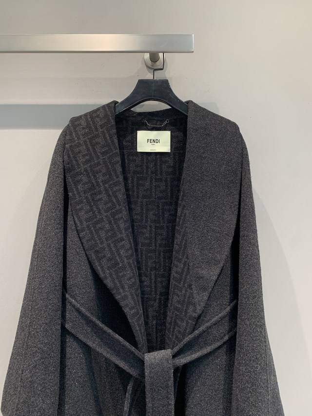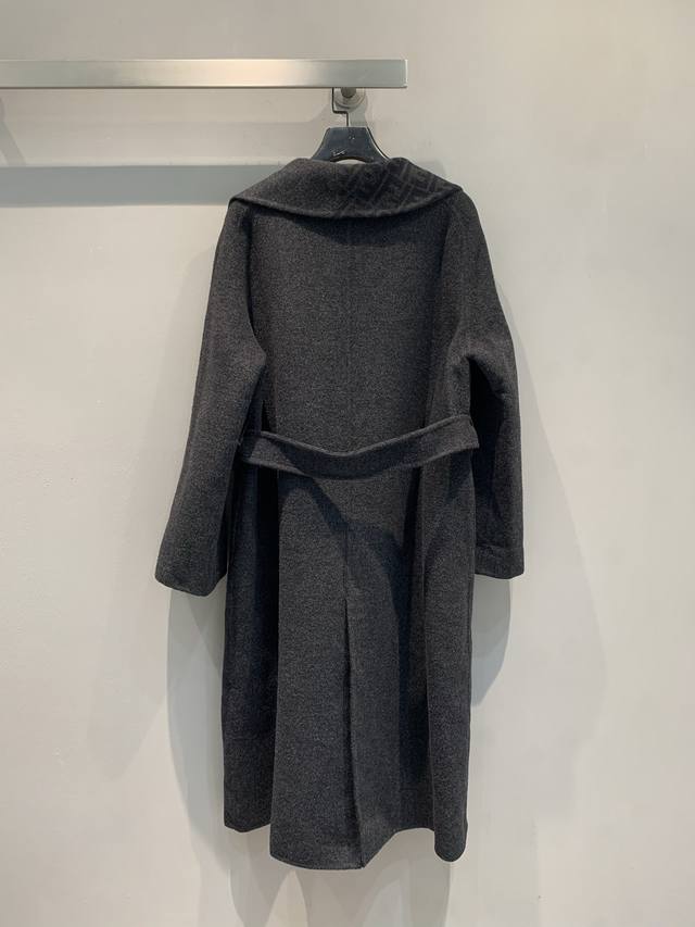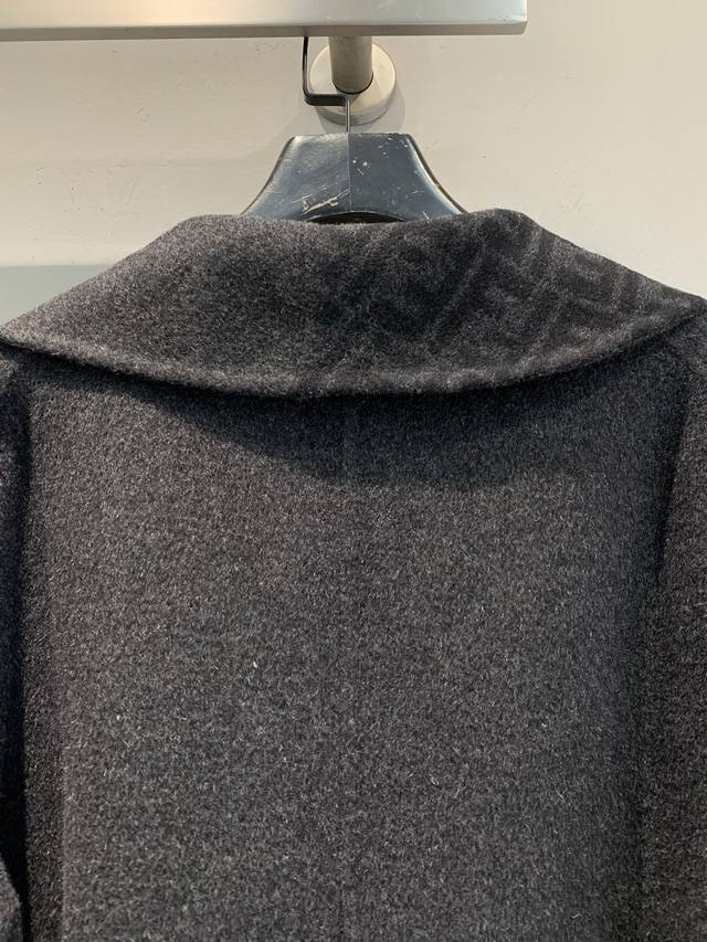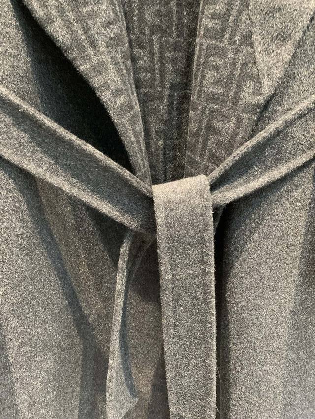 Fd 2025 Fall/Winter new Ff monogram chain-lace midi coat. Made from 100% Australian ultrafine wool, this custom-woven, three-dimensional double-F monogram double-faced tweed fabric offers a soft, stylish feel! Paired with a matching belt, this loose-fitting, dropped-shoulder design creates a relaxed yet intellectual aesthetic. Sizes: 36, 38, 40,