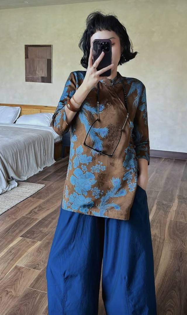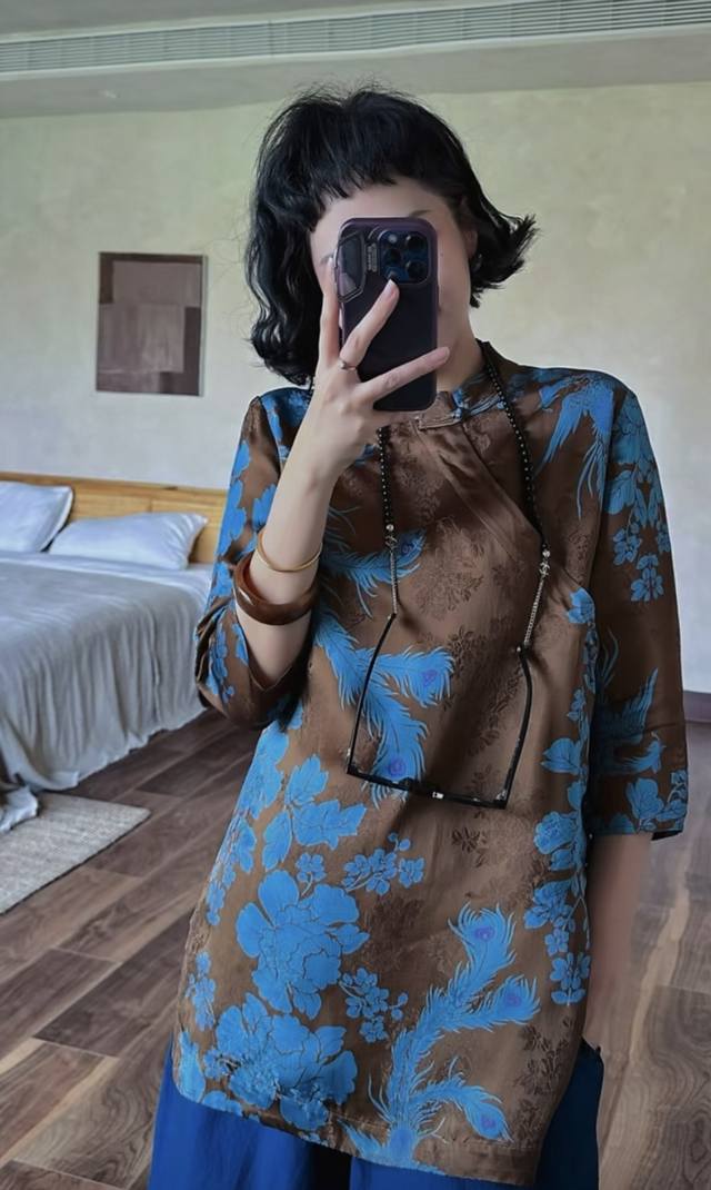 Featured: High-end, popular Phoenix Xiangyunsha cheongsam dress! The classic cheongsam stand-up collar and slanted lapel design outline a gentle temperament, and the mid-length sleeves are just the right size to flatter the arm lines. The unique texture and drape of Xiangyunsha make it comfortable to wear and highlight the noble charm of oriental women. Smlxl