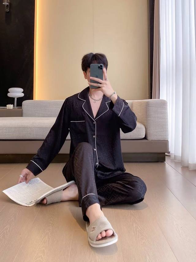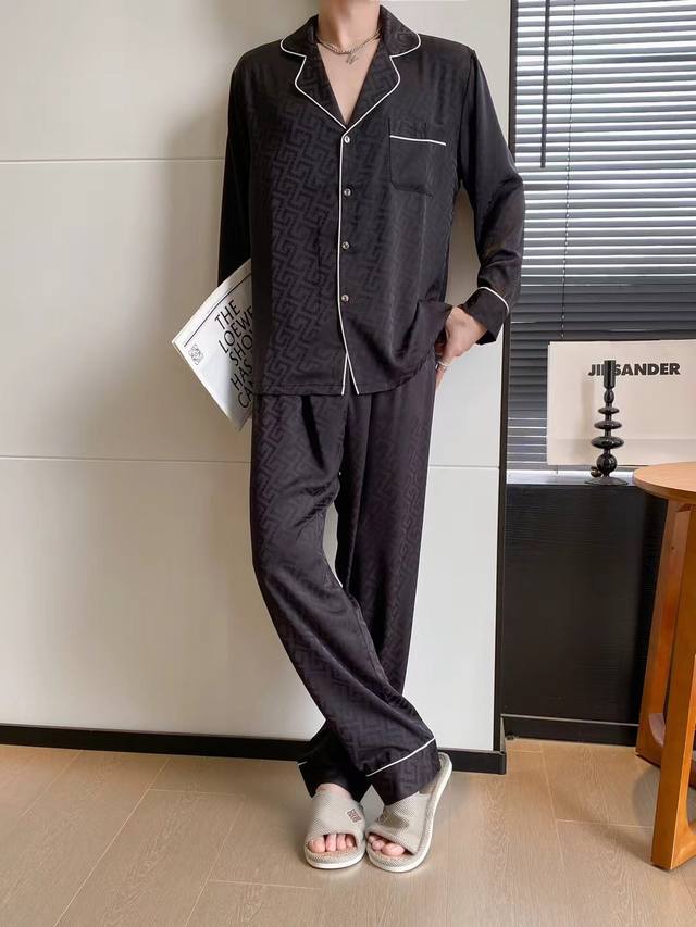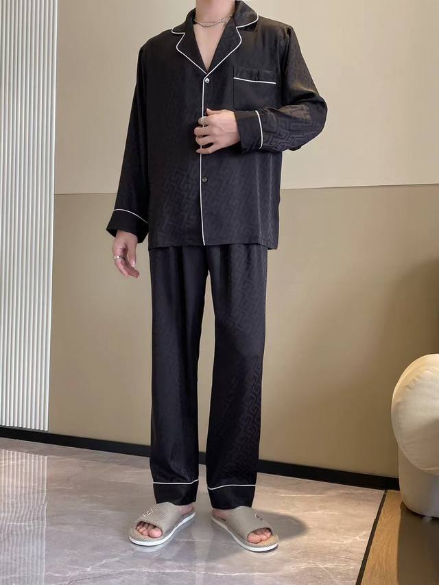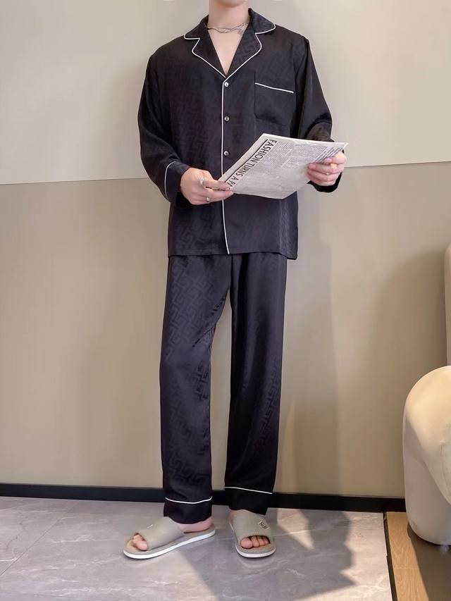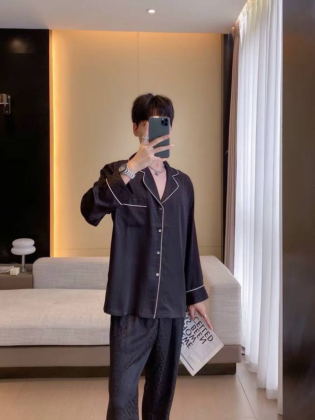 Fen New Autumn/Winter Pajamas Original High-End New Product Pajamas Casual 2-Piece Set Long Pants Long Sleeves Imported Silk Satin Fabric Lined Edges Soft to the Touch Super Cool Super Beautiful Super Comfortable Elegant and Luxurious Style Can Also Be Used as a Fashionable Casual Set Extremely Fashionable Blending Fashion and Exquisite Style Loved by Many Celebrities L XL XXL 3XL DDD
