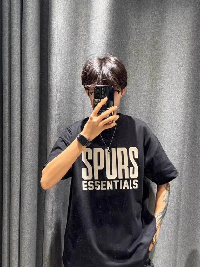 Fog-555# Fear Of God Essentials x NBA joint Spurs Spurs back letter print round