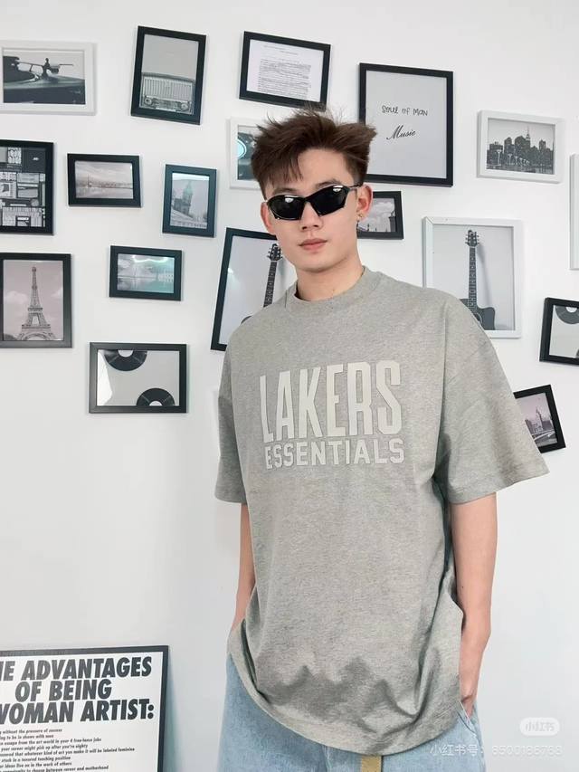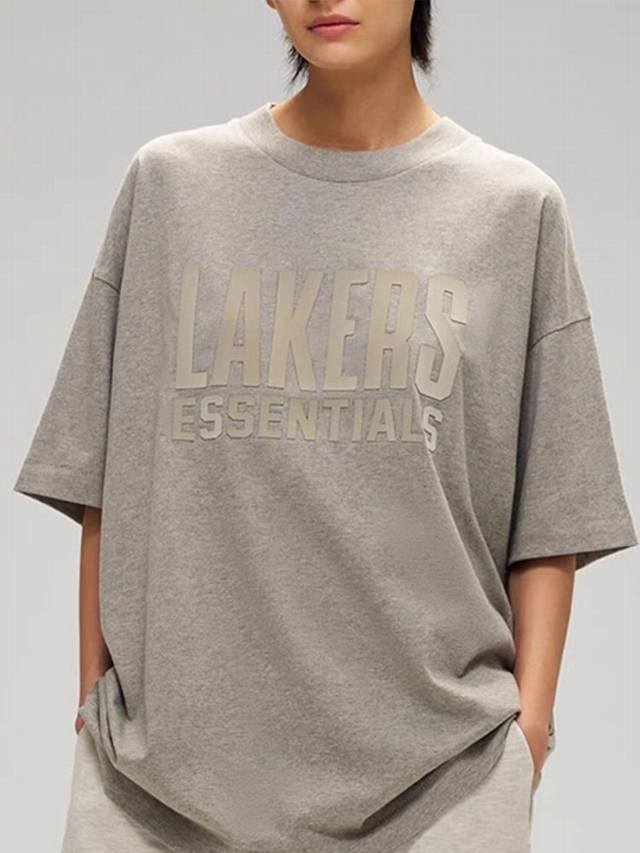 Fog-566 #Fear Of God Essentials X Nba Joint Model Ss25 Nba-Lakers Los Angeles Lakers Letter Printed Round Neck Short Sleeve T-shirt Unisex
