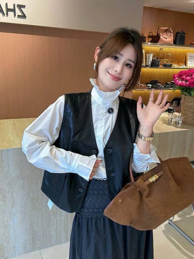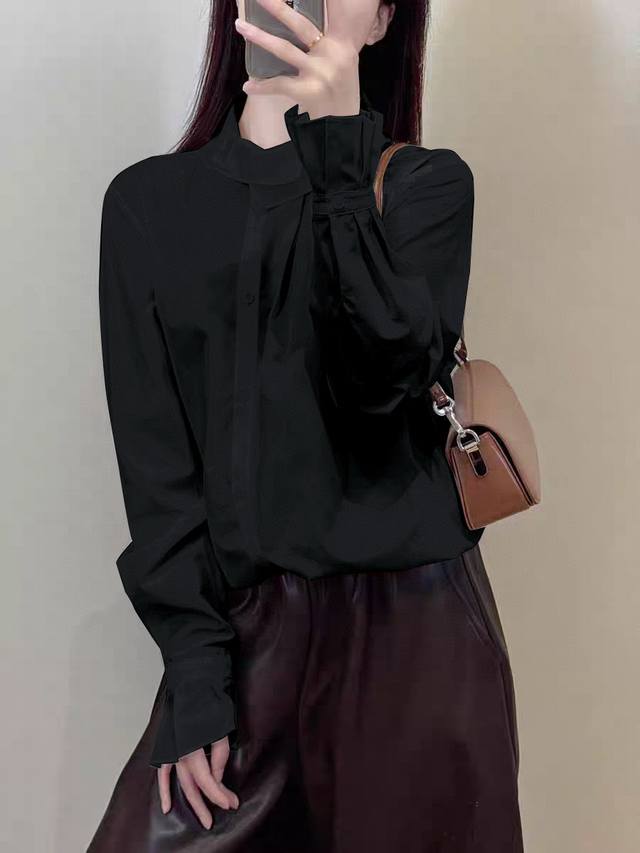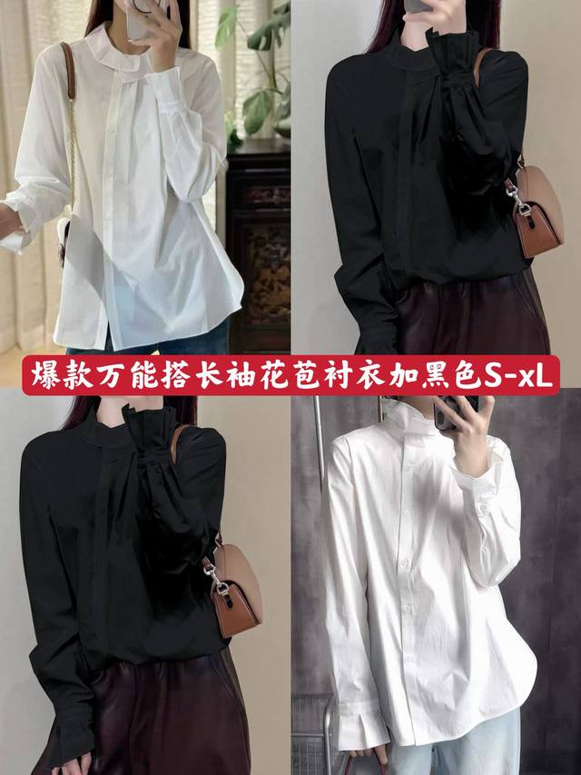 Four-season long-sleeve top will be released tonight and the day after tomorrow. It's here! It's here!! Highly recommended high-end version. A treasured item that can be worn in all seasons. Vest shirt with bud design and lotus leaf collar that can be turned up or stood up. Multiple ways to wear it to easily interpret a variety of styles. Whether worn alone or layered, it looks stylish. Fabric: Wrinkle-resistant cotton blend. Color: White, Black. Sizes: S-Xl.
