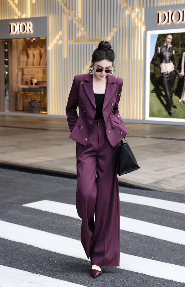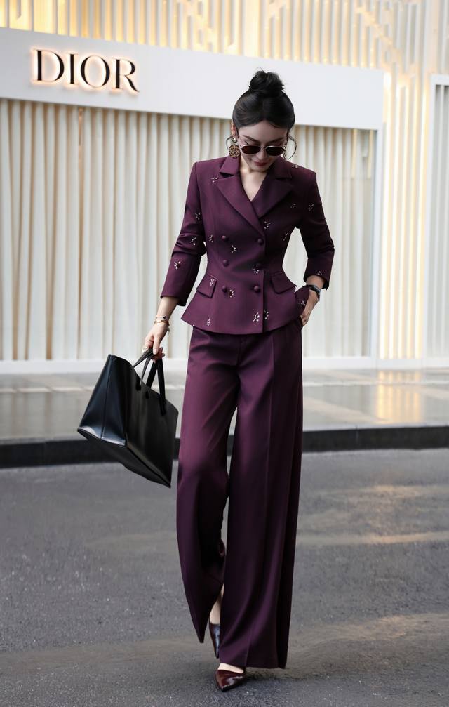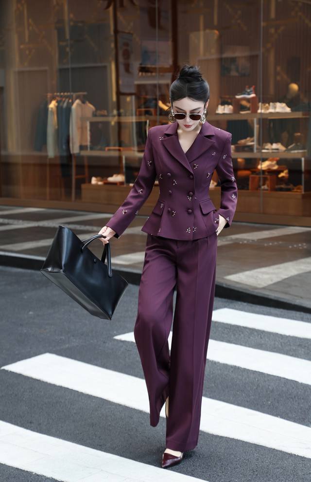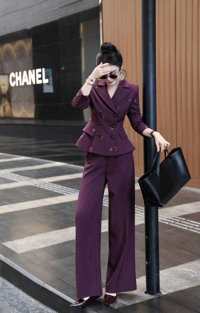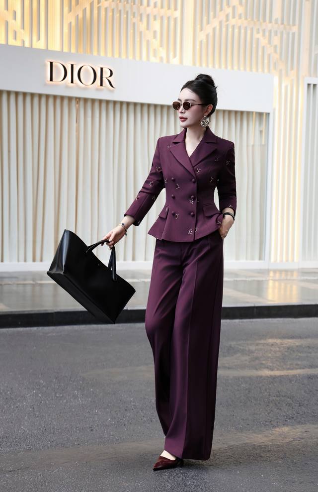French heavy embroidery waist drawstring temperament straight pants suit