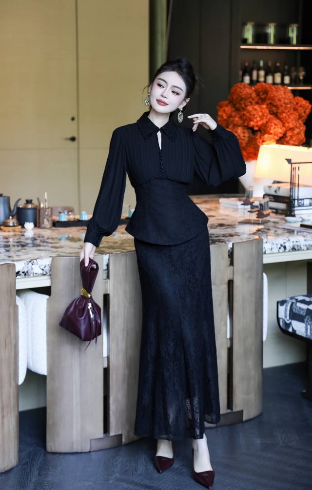 The upper body is elegant and elegant, with a slim waist and a good figure. Black apricot color S~Xxl