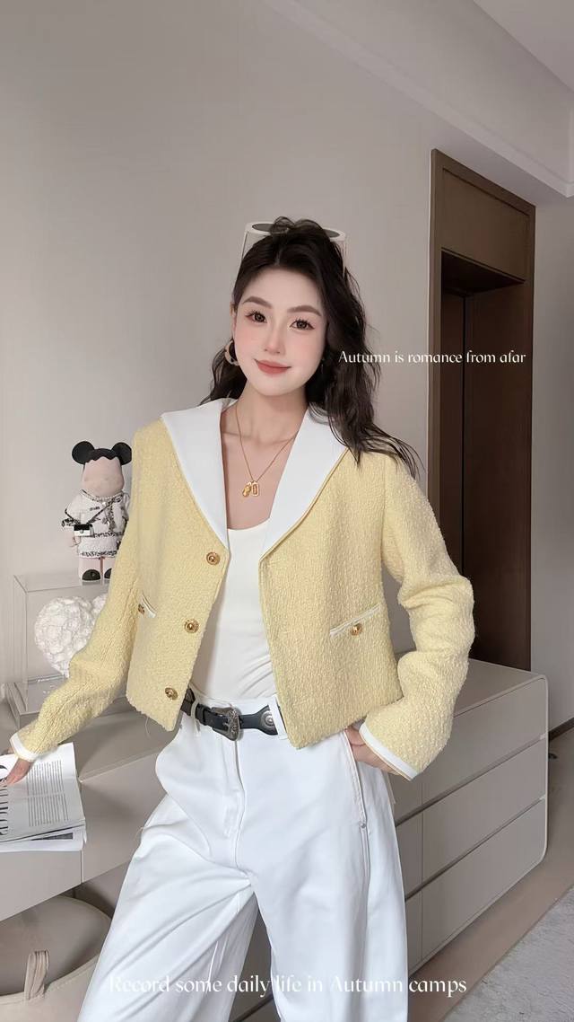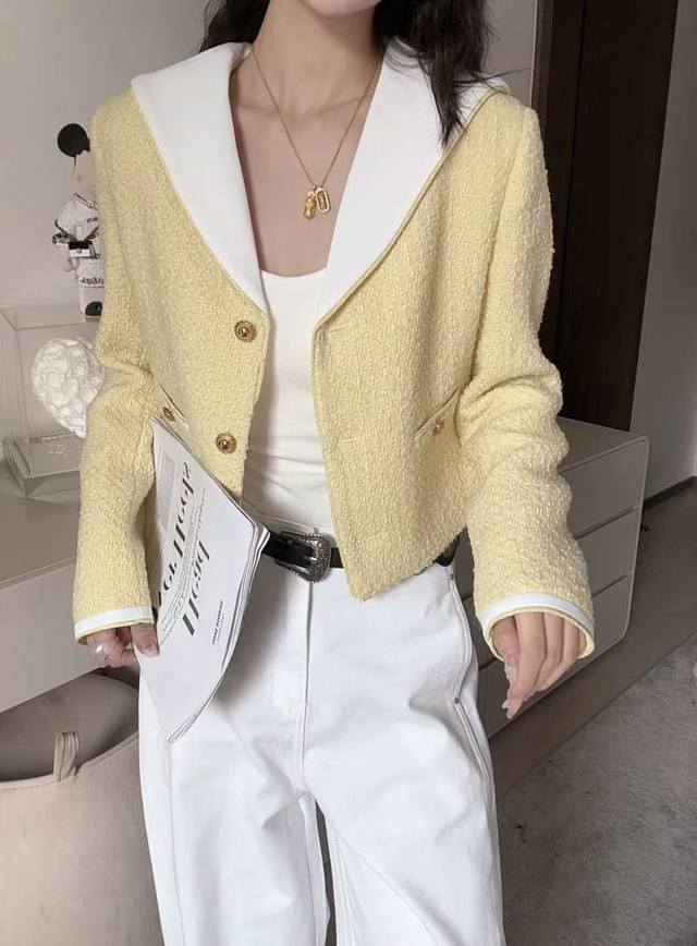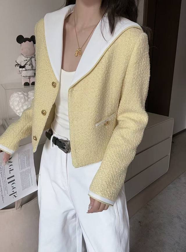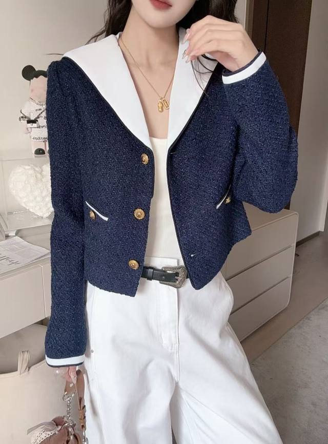 French nautical style | Contrast navy collar wool boucl