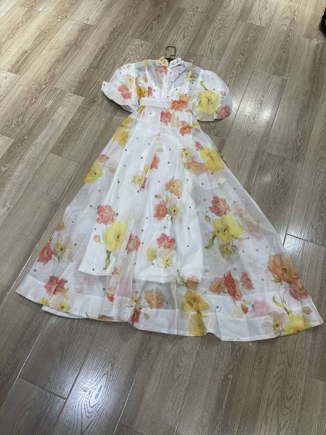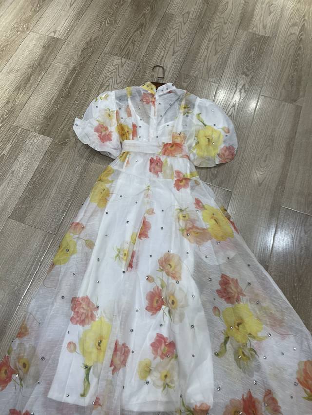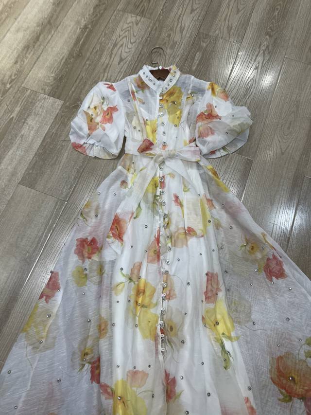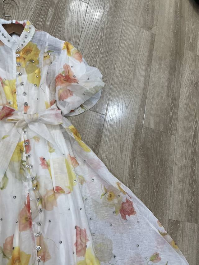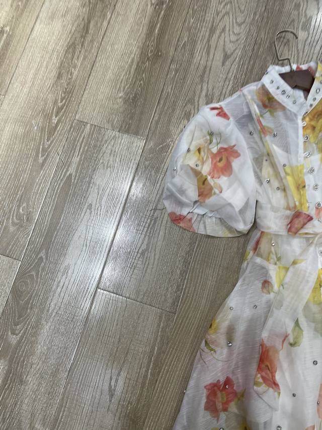 French new purple hydrangea print heavy nail diamond bubble short sleeve big sw