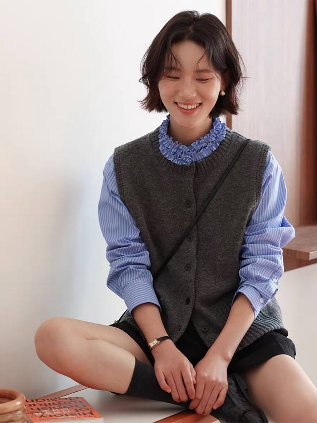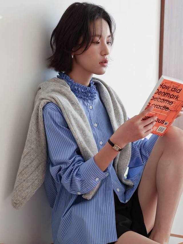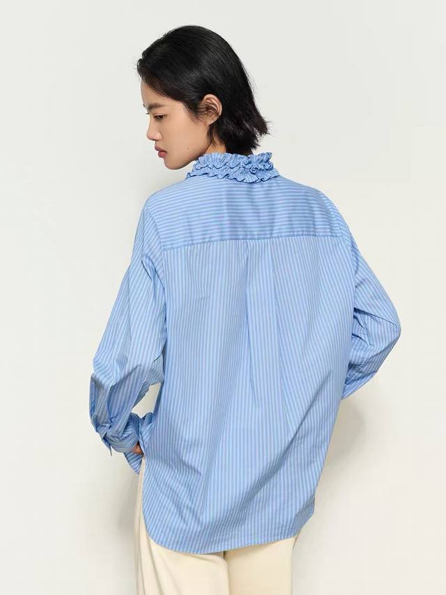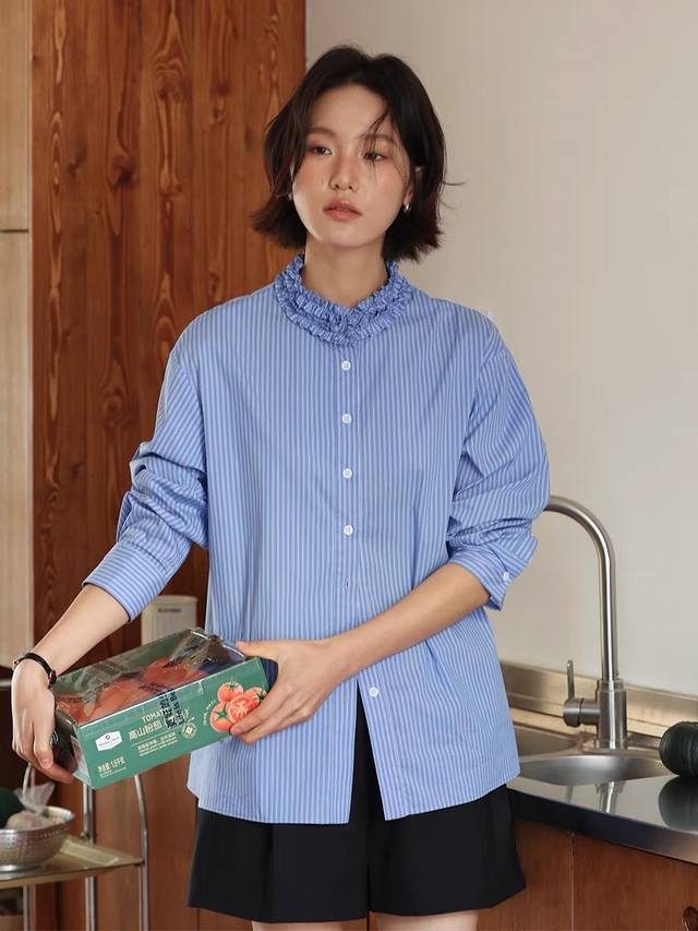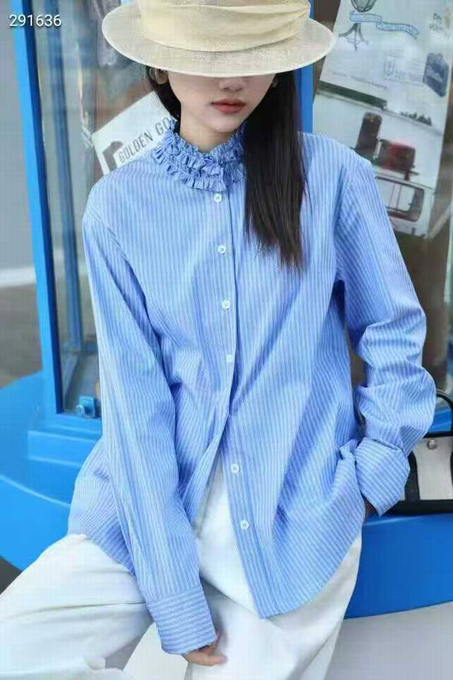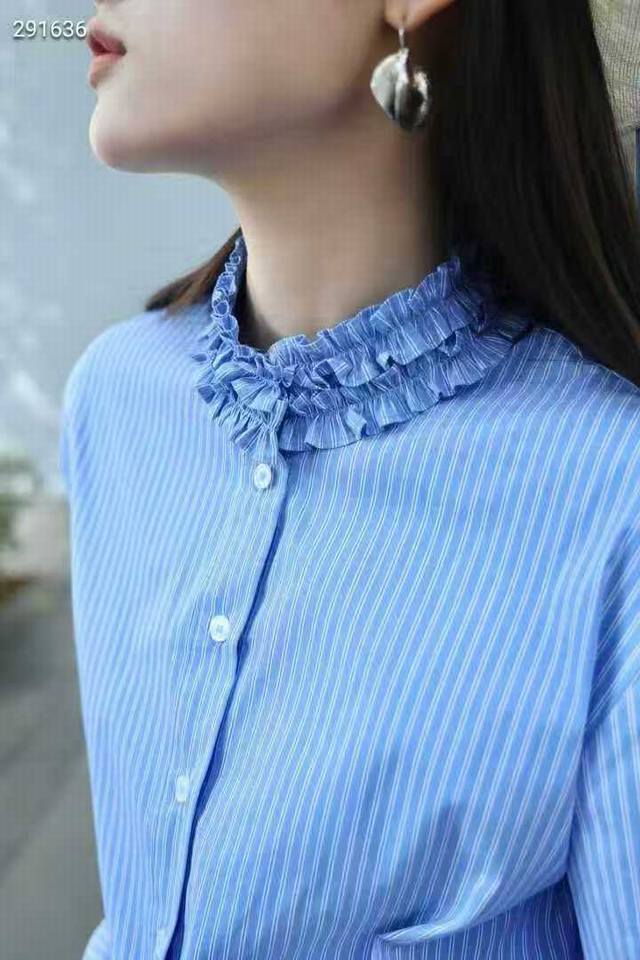 / French retro design, elegant and slimming blue striped shirt, available in thre