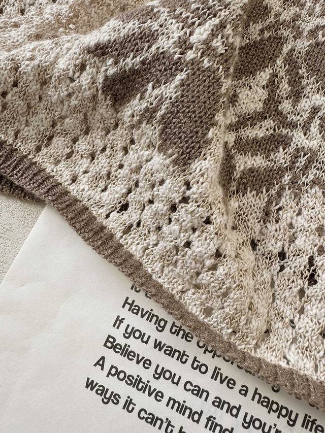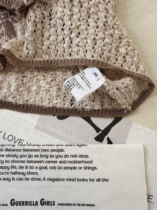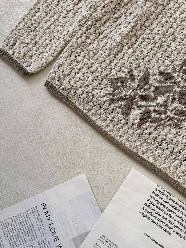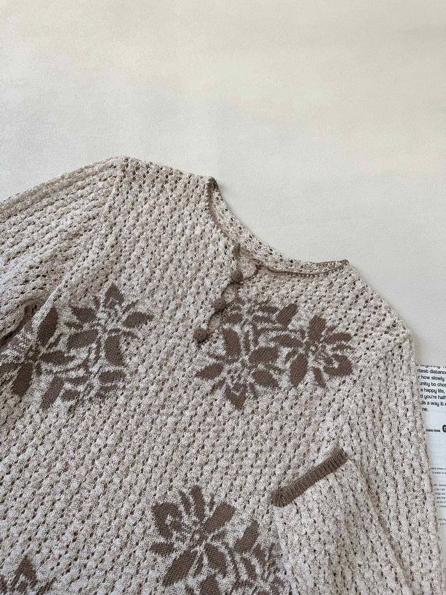 Full of French style with an effortlessly chic vibe... DDD This loose-fitting, openwork woven color-blocked floral top in dark brown and light gold, incorporating gold thread weaving elements, evokes a sunny beach feel. Its inherent romance makes it perfect for photos, especially when paired with jeans. 34.36.38 DDD