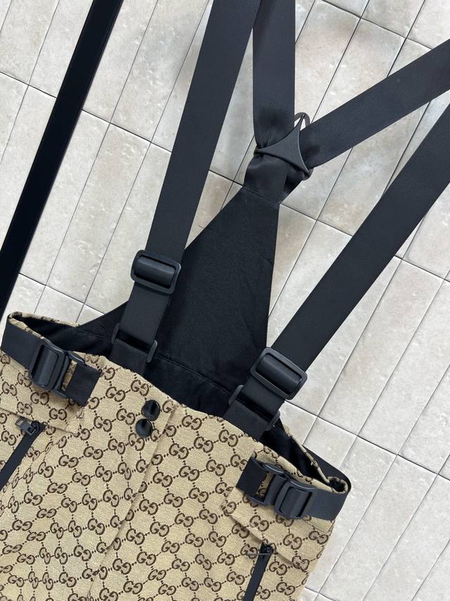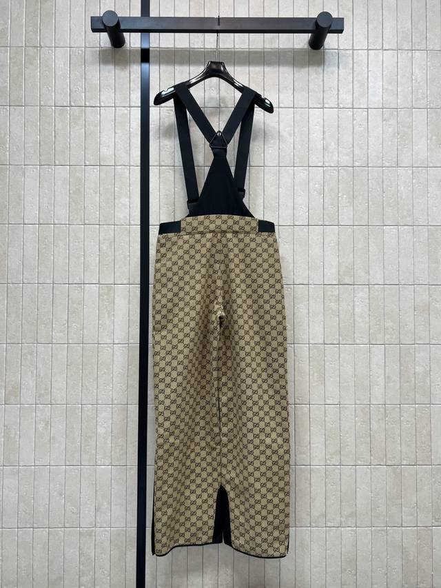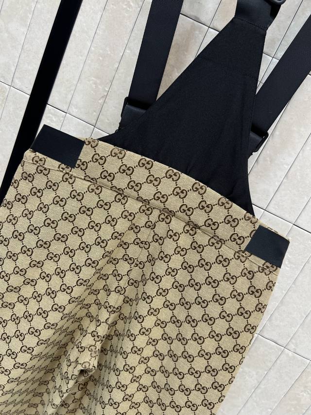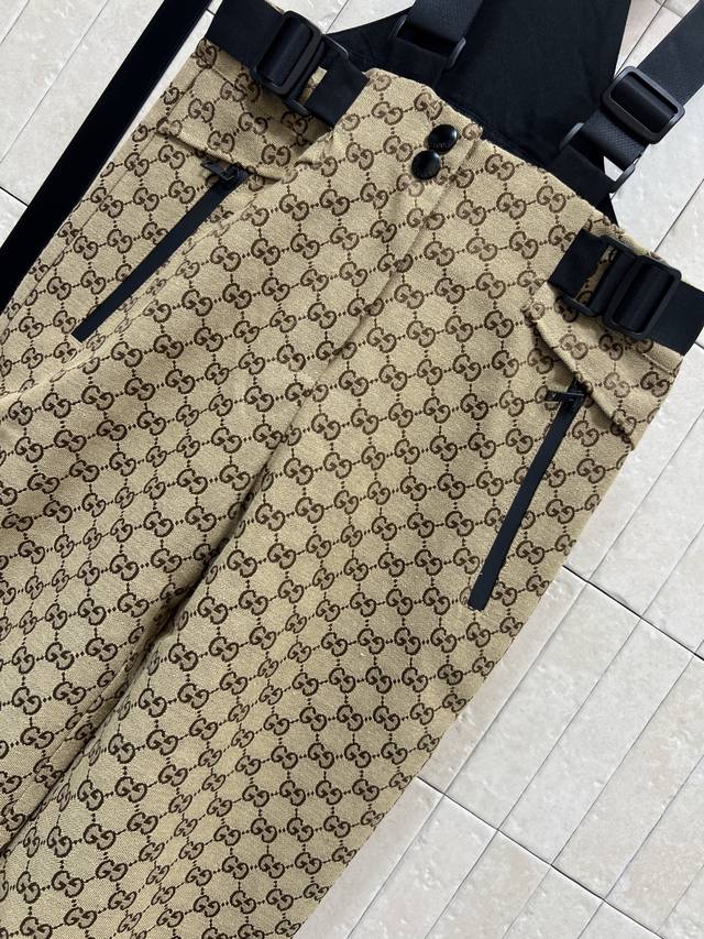 G Brand 2025 Fall/Winter New Double G Jacquard Ski Overalls - Classic GG pattern + beige and black color scheme for a luxurious feel! High-performance waterproof fabric, perfect for skiing and outdoor activities. Multiple straps, adjustable waistband with detachable belt for comfort and practicality. Black hem panels for scratch-resistant and durable wear. Snap button design on both sides of the cuffs. Professional ski gear. Warm and stylish, also looks great with the matching down jacket. Available in four sizes: SML-XLDD
