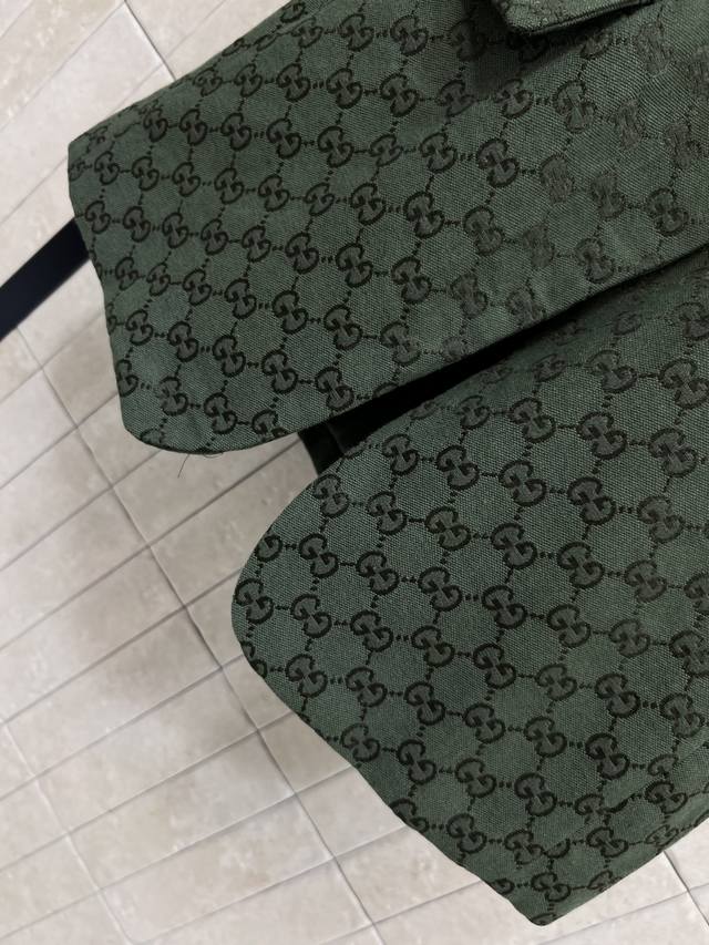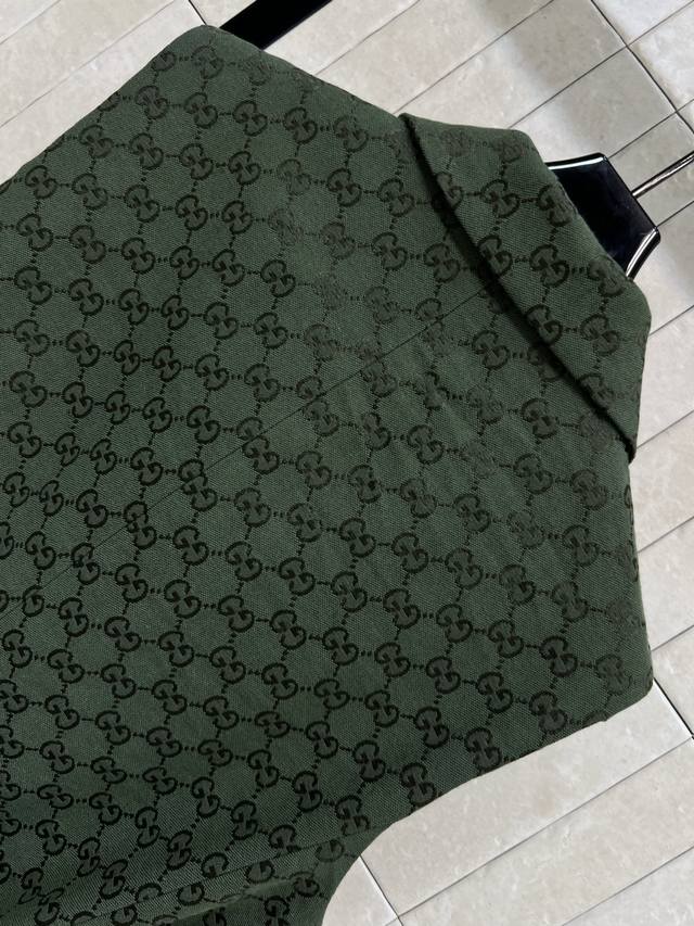 Gjia 25 early autumn new green double G jacquard series lapel sleeveless waistcoat classic full-print Gg jacquard jacket. Don't miss it if you like monogram. It greatly enhances your temperament. It is very good for leisure or commuting. It has a natural aura. The loose version is slim and fashionable. It is super advanced. Pair it with the same series of trousers and shorts. The upper body is age-reducing and elegant. It can be sweet or salty. One color, three sizes S M L