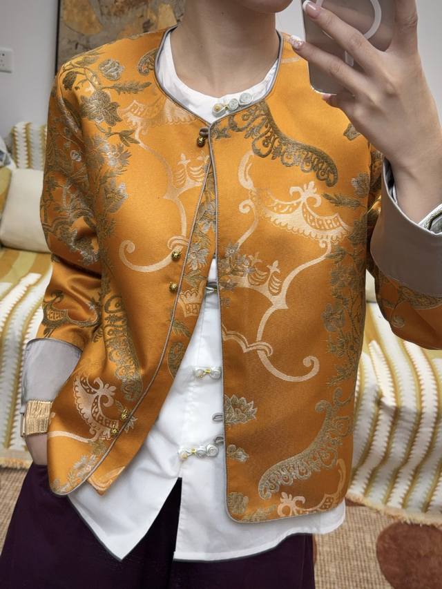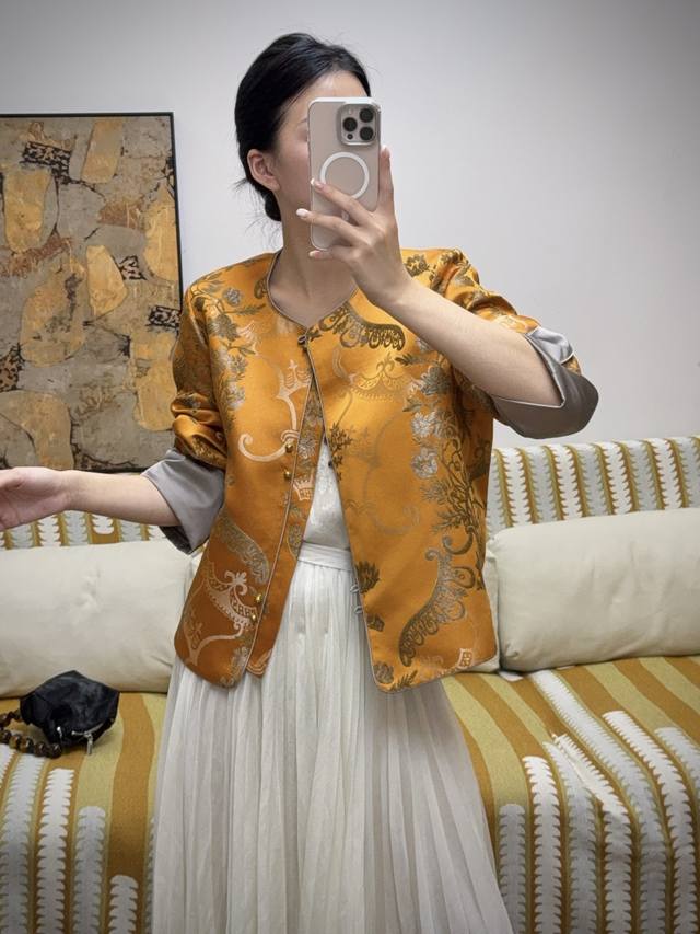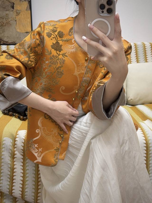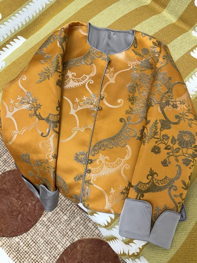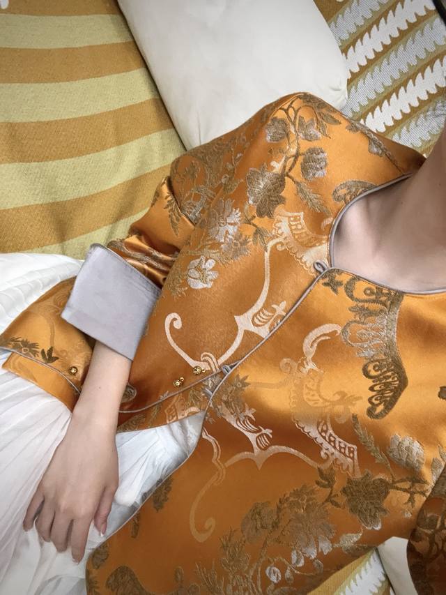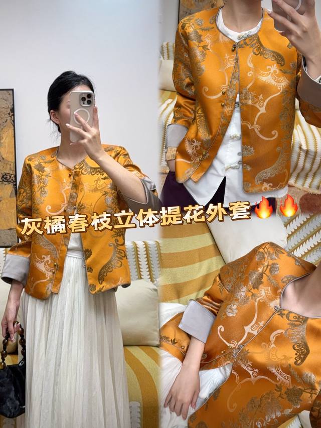 Imported jacquard 3D fabric short version neat and slim, jacquard craft blooms spring vitality, gray-orange color gentle aura, one piece of clothing unlocks elegance and sophistication! Smlxl