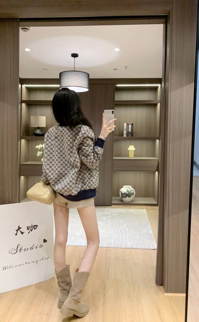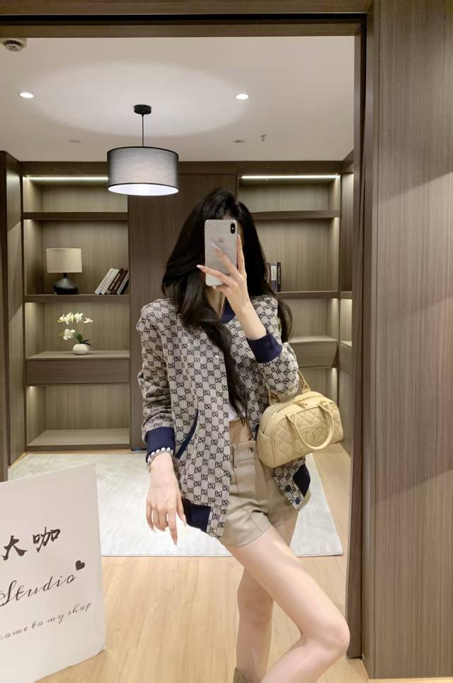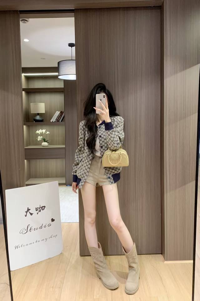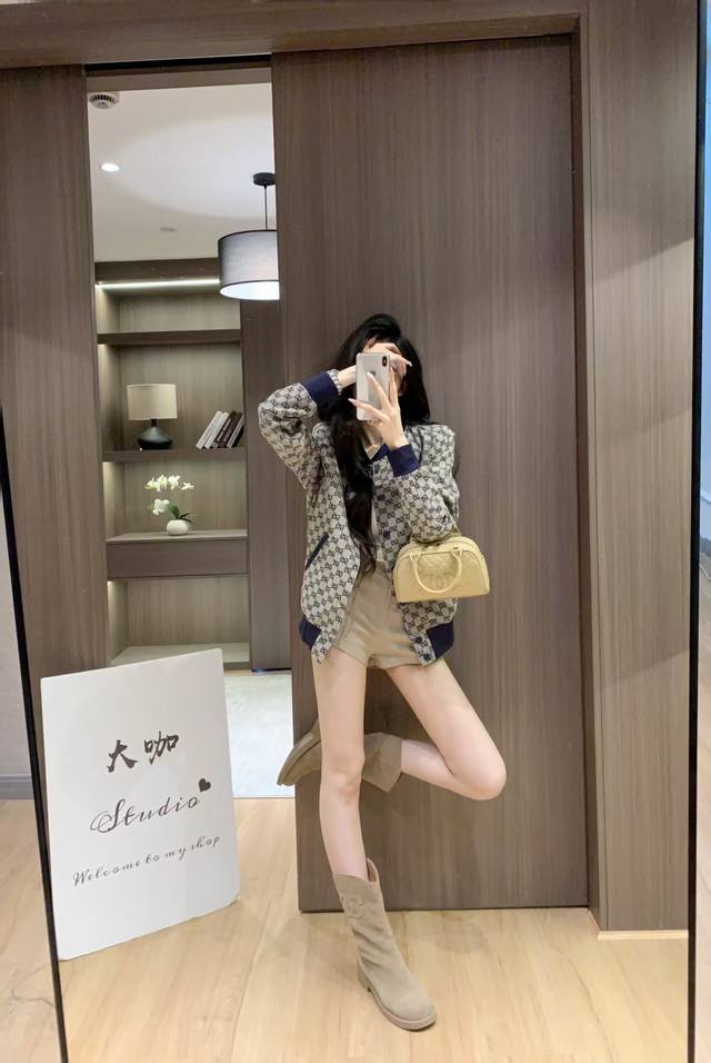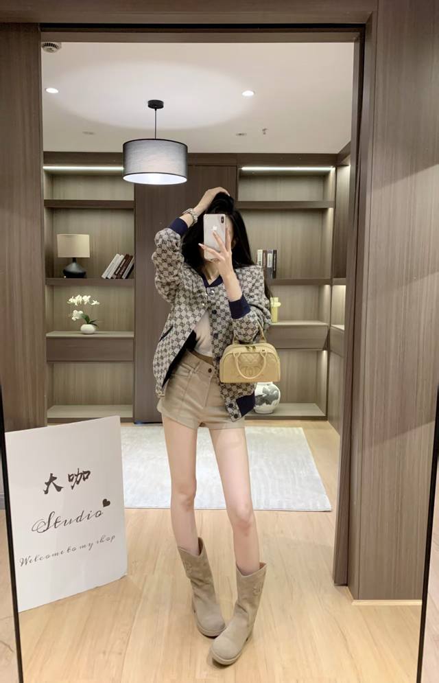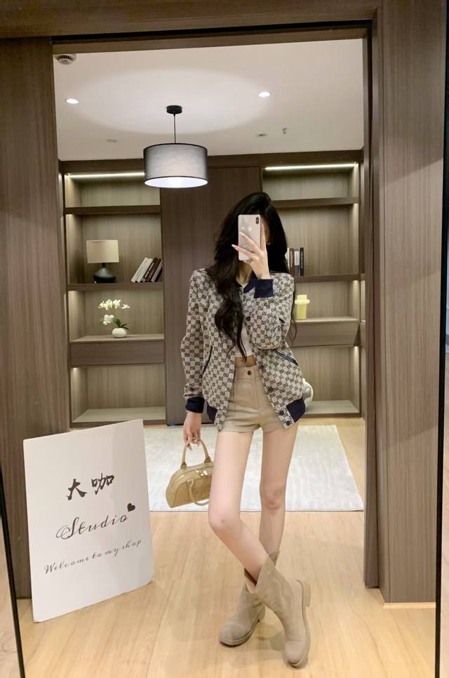 Miu Elegant Short Jacket, 25Ss, Autumn/Winter New Arrival. This brown herringbon