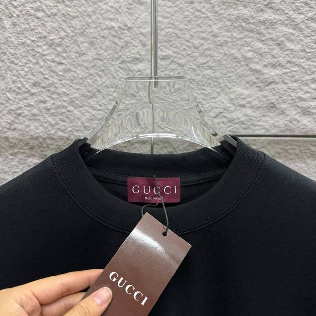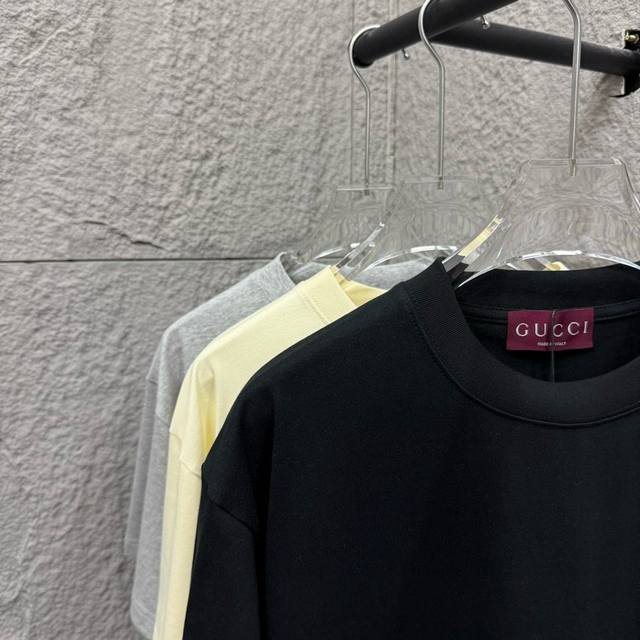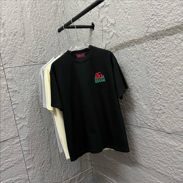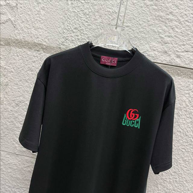 Gu Gucci 2025 spring and summer new style chest letter double G embroidered short-sleeved T-shirt customized double yarn plain cotton fabric unisex