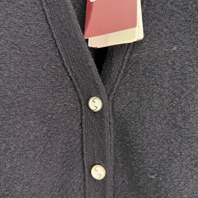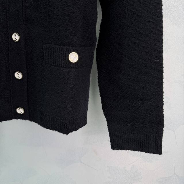Gu*25 Autumn/Winter New V-neck Knit Cardigan. Made with high-quality yarn, it's soft and comfortable to the touch. Features a front pocket and metal button embellishments, showcasing impeccable attention to detail. The loose fit is forgiving and versatile, suitable for wearing alone or layering, making it easy to style for both work and leisure. Classic black with a V-neck design, elegant and versatile, it's a foolproof choice. Available in 3 sizes: S, M, L, T, 226B, DDD.