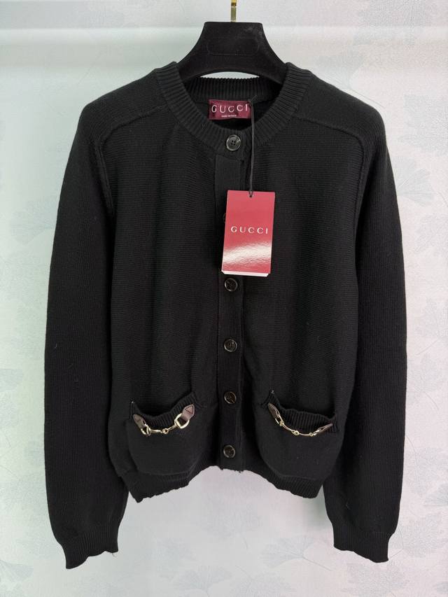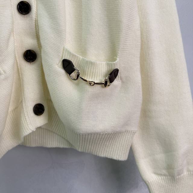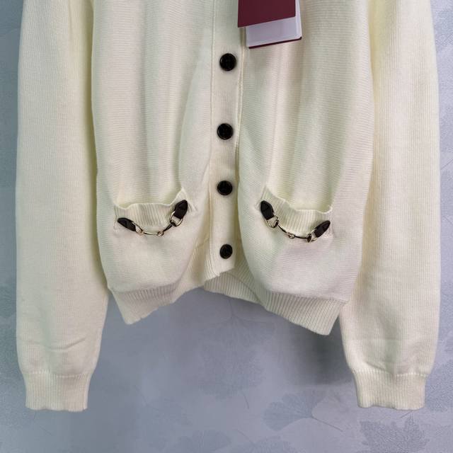 Gu*26 Early Spring New Knitted Cardigan, made of soft wool with an ultra-delicate feel. Features black buttons and horsebit metal embellishments, exquisite details, and a round neck design that is slimming and versatile. Pairs elegantly with skirts or high-waisted pants for a casual yet sophisticated look. Simple yet luxurious, easily suitable for commuting or parties. 2 colors, 3 sizes: S, M, L, T226B. DDD