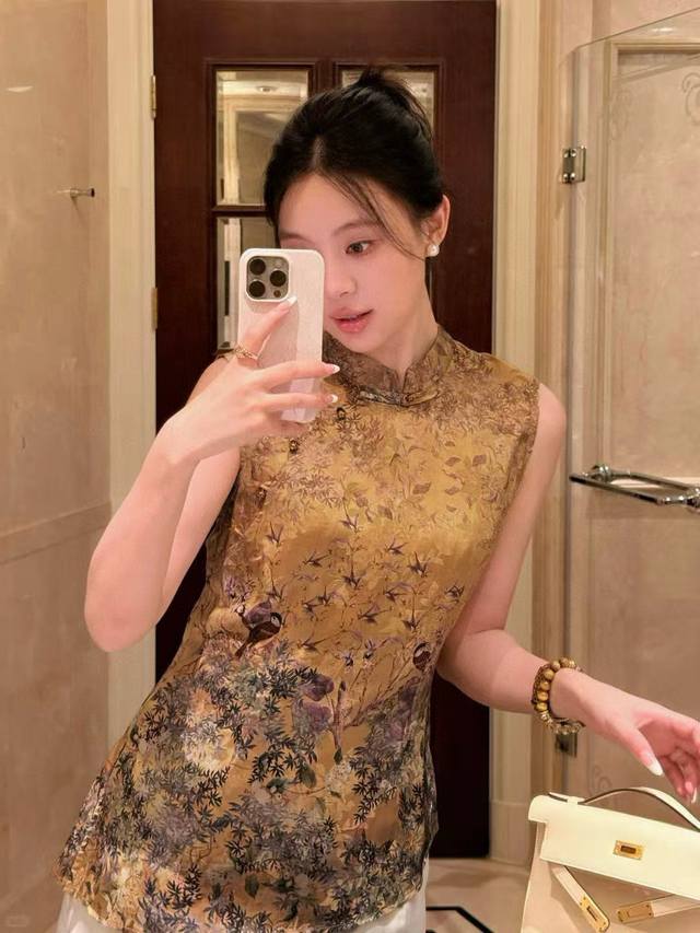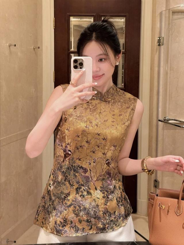 Happy on the Branches New Chinese style printed skylark yellow rayon shantung ya