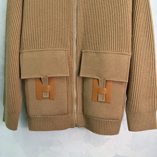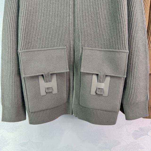 He*25 Autumn/Winter New Mid-Length Cashmere Knit Zipper Coat! Features H-button and leather-trimmed pockets, Swiss machine knitting craftsmanship for a simple and elegant look! Classic loose fit, flattering and versatile! A chic and elegant must-have! Perfect workmanship and quality evident in the details. Available in 4 colors and 3 sizes: S, M, L, D, D.