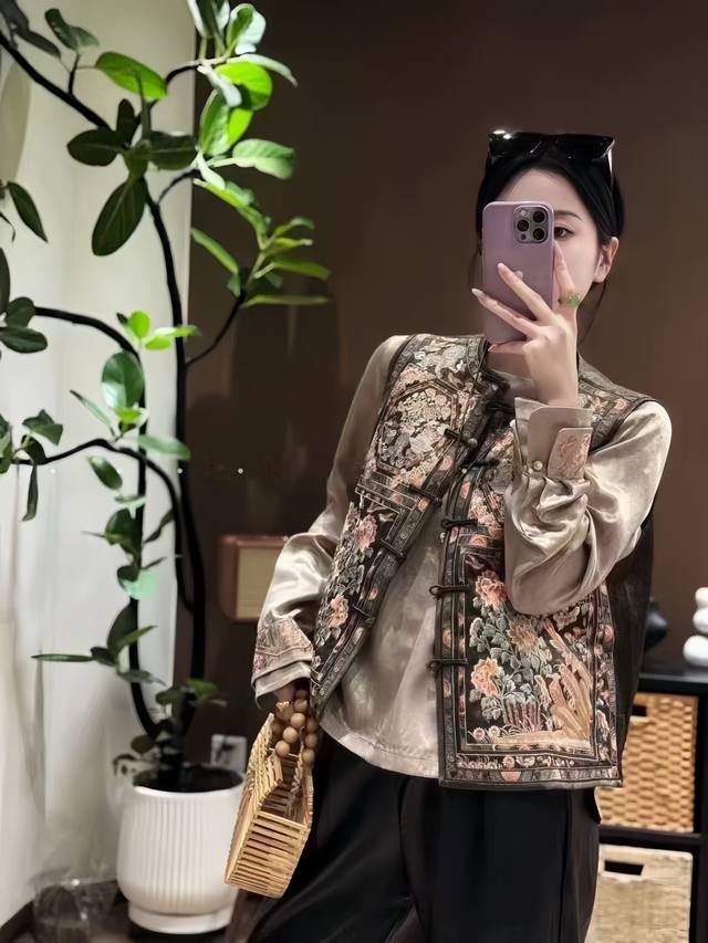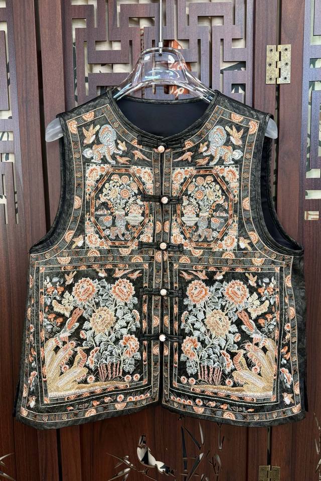 Heavy Chinese embroidery vest features rich and exquisite embroidery patterns and exquisite craftsmanship. The Chinese buttons are well matched. The overall design is retro and elegant. The details show ingenuity, creating an elegant and high-end texture. Smlxl