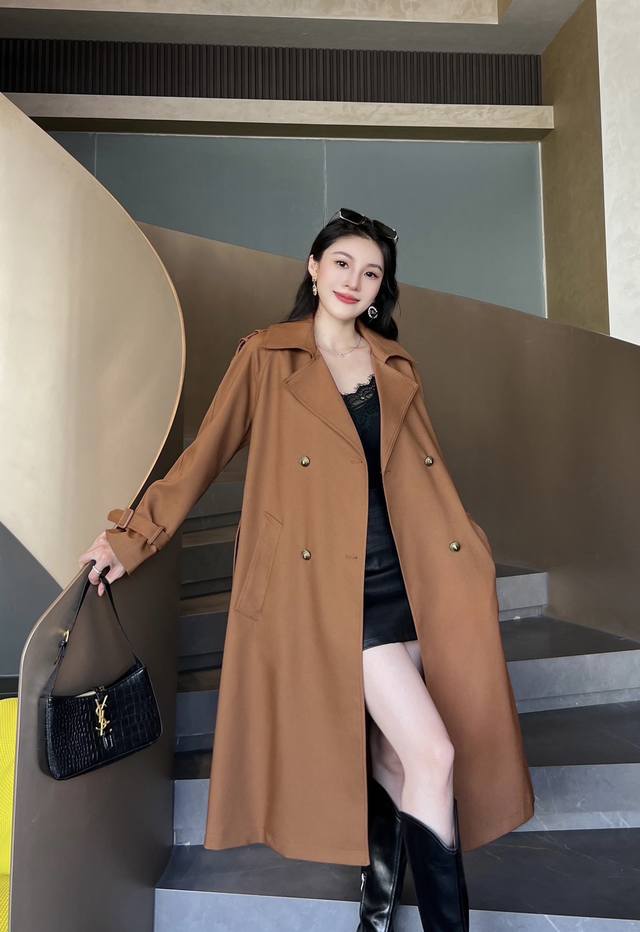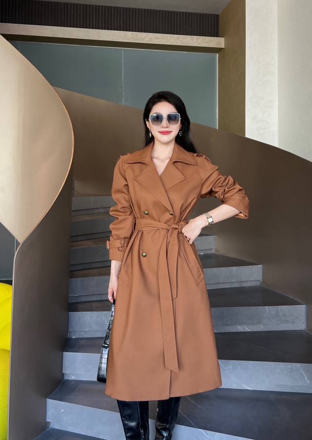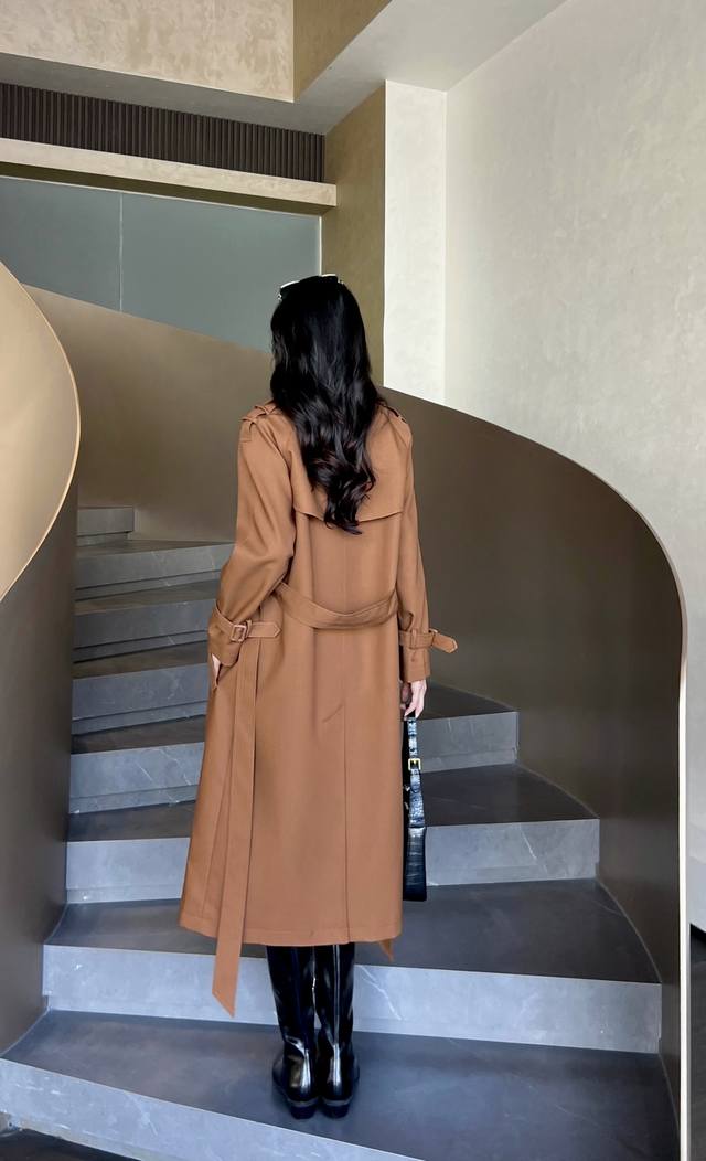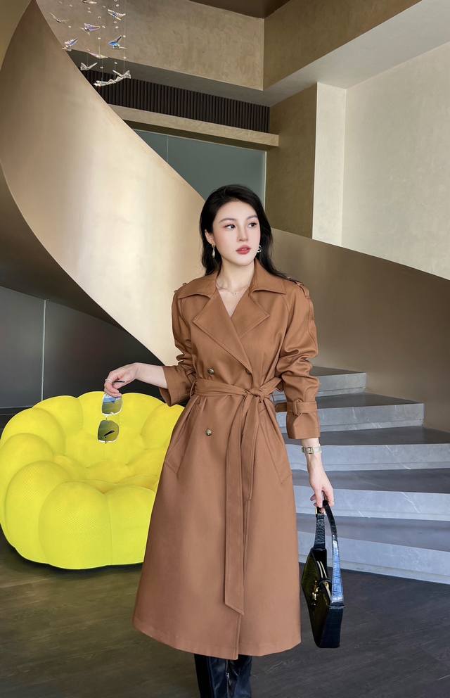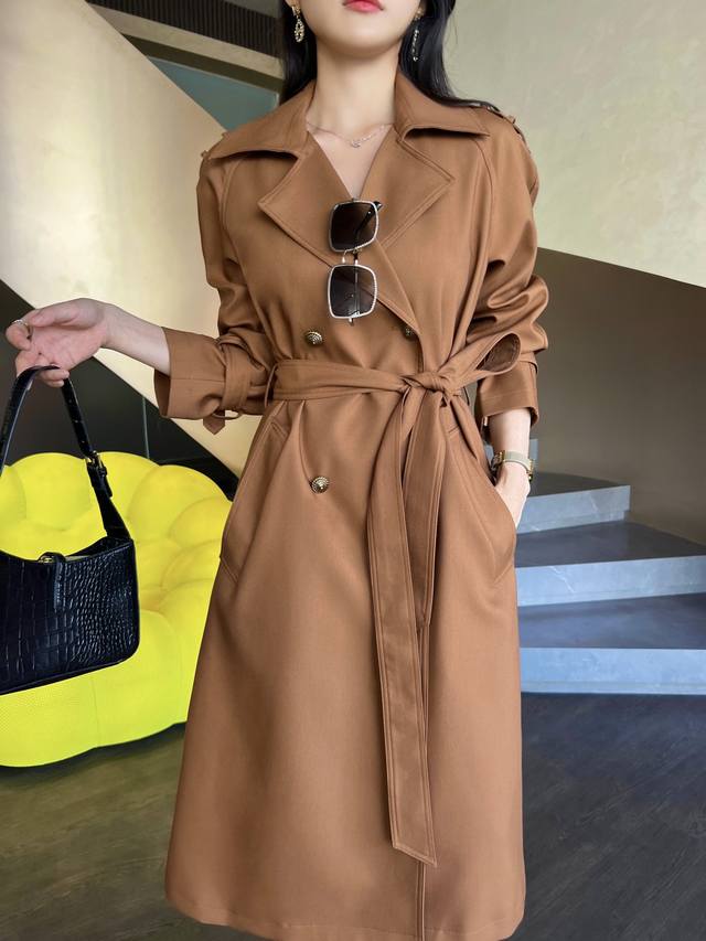 Heavy double-needle pressing + ice-bare silk lining, early autumn new double-breasted belted solid color classic temperament long slim windbreaker, SMLXL