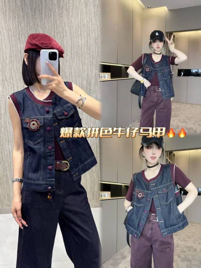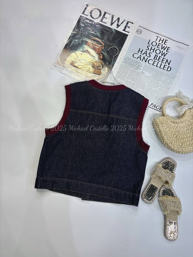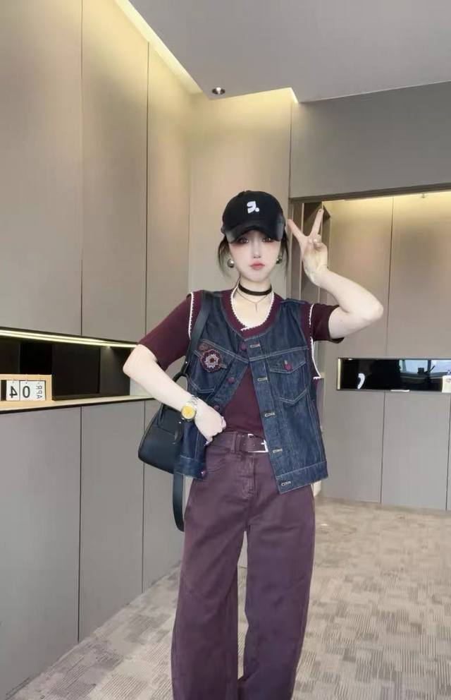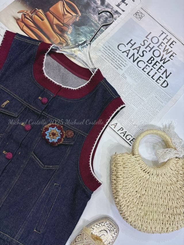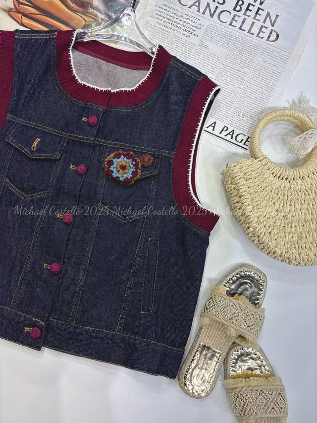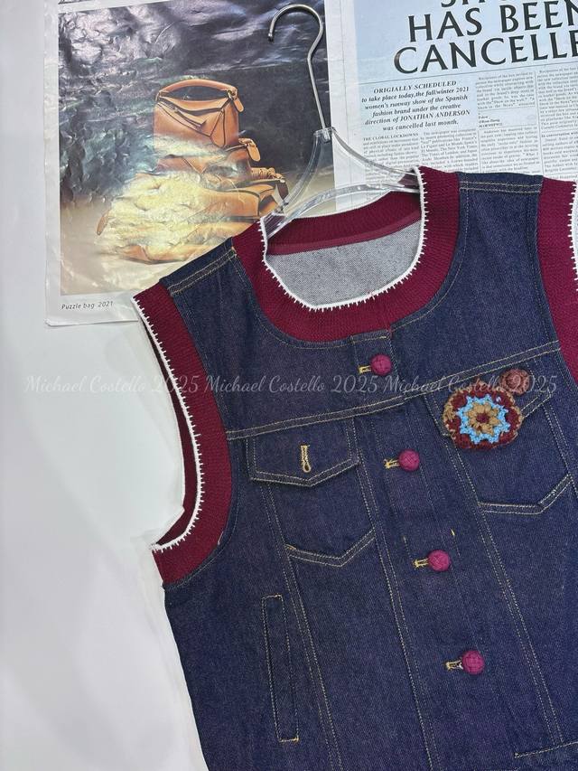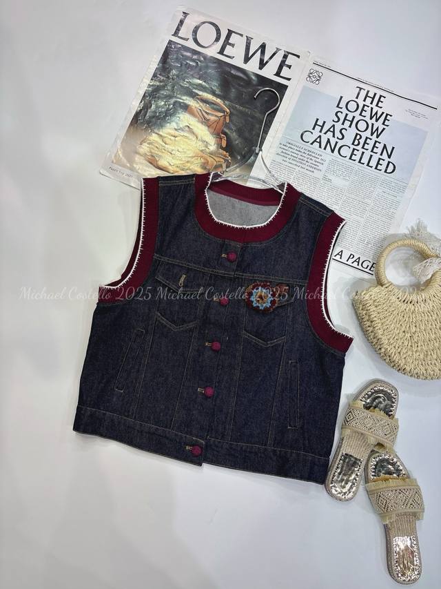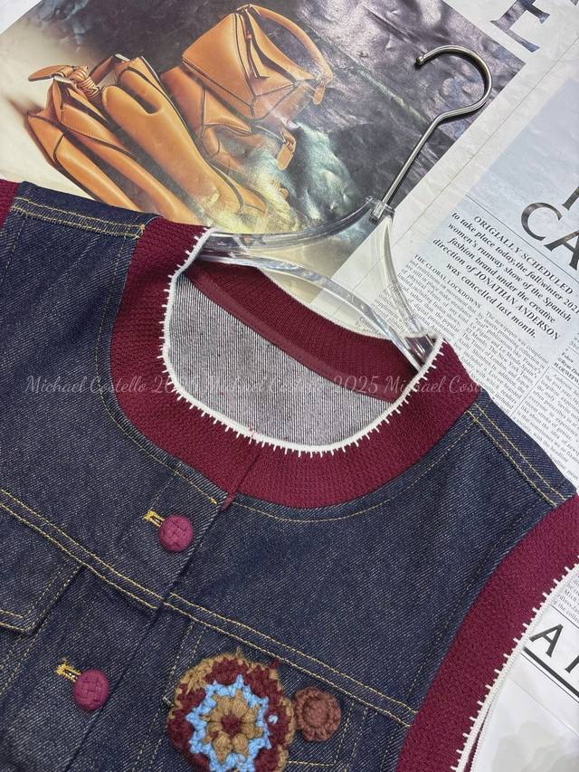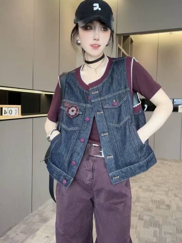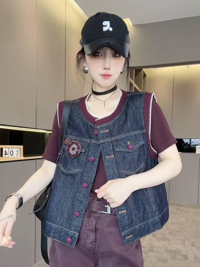 Heavy hit design with retro and elegant temperament. Three-dimensional flower denim vest is retro and fashionable. Contrast color knitted collar + exquisite small flower embroidery details are very advanced. Smlxl
