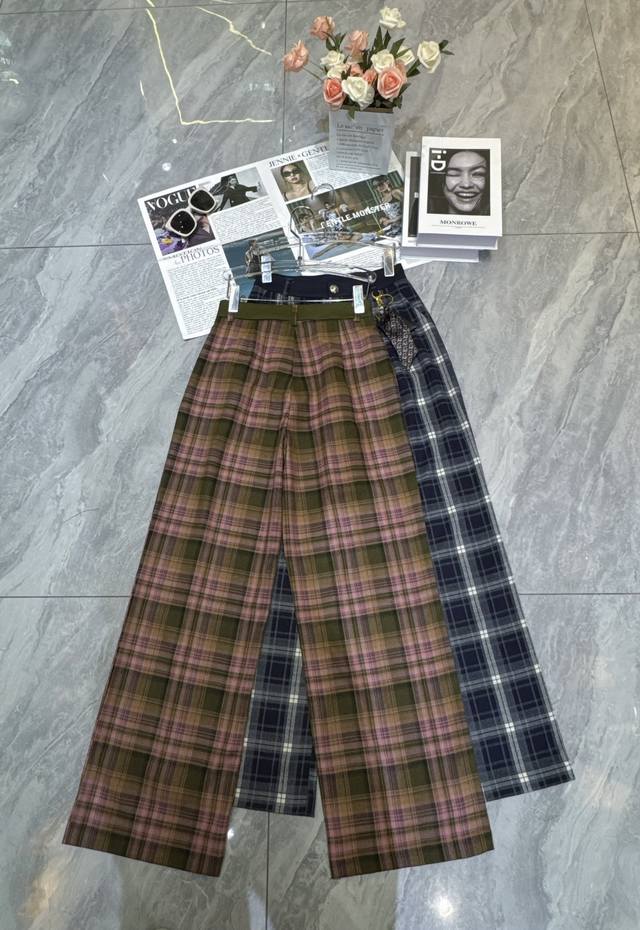 Heavy plaid straight-leg pants have an autumn atmosphere. They are gentle and steady. The straight-leg version modifies the leg shape and accommodates all body shapes. The pants are full of details and unique pendants add a sense of design to create a lazy atmosphere. Smlxl