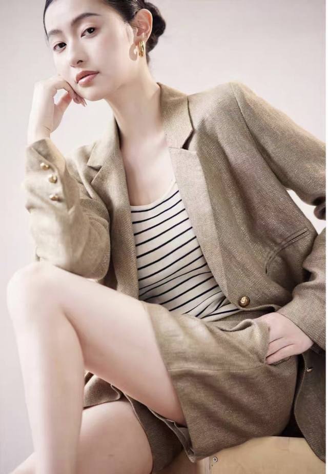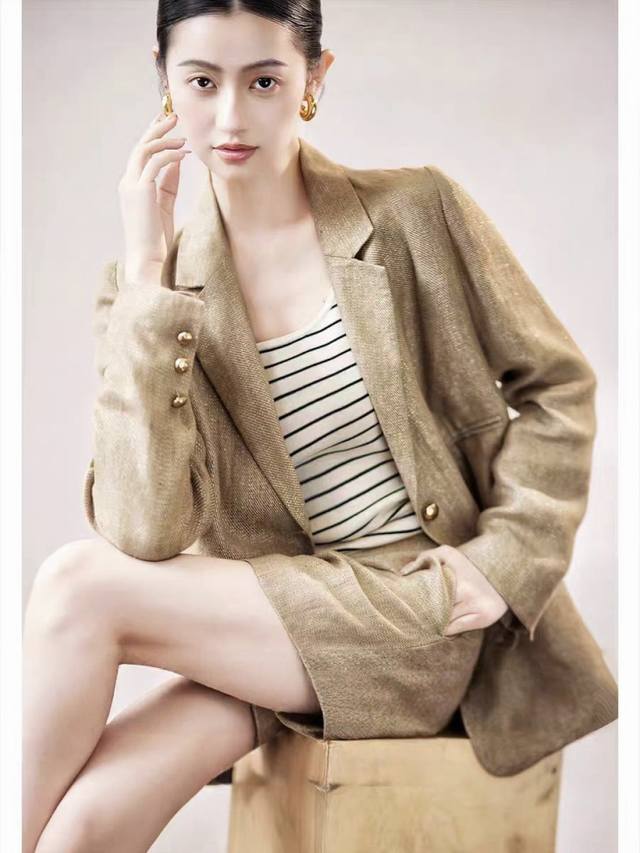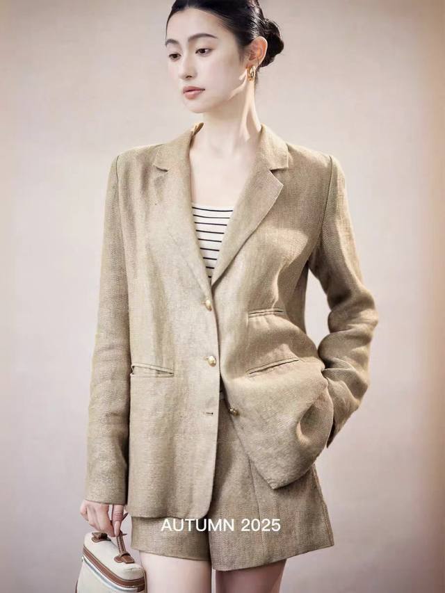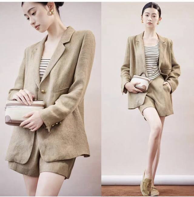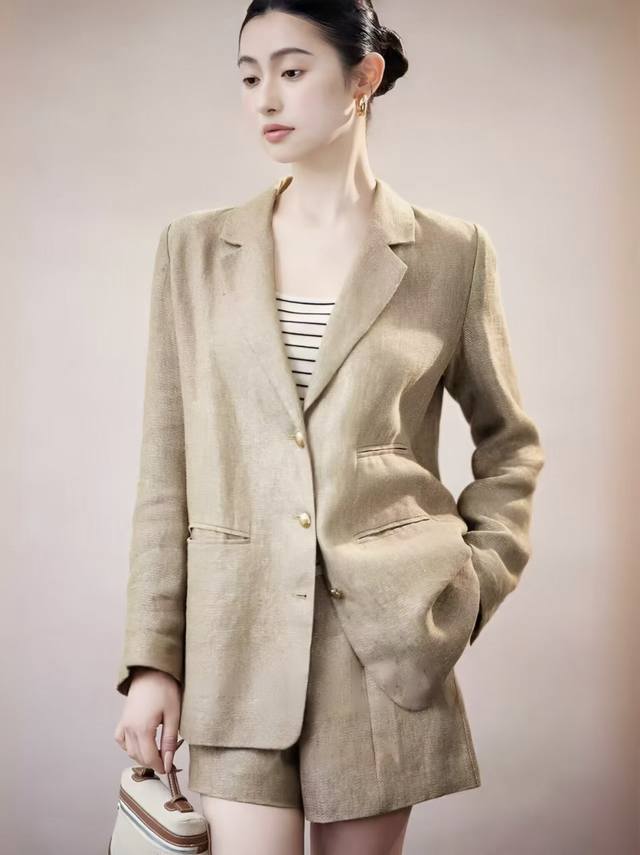 Heavy promotion! Minimalist luxury old money style bright silk linen suit jacket + shorts set commuter fashion Smlxl