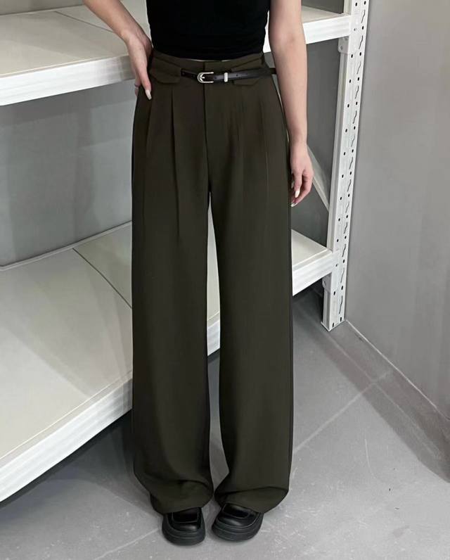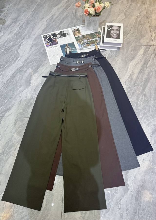 Heavy recommendation: acetate wool straight-leg pants. Acetate and wool materials have the smooth drape of acetate and the warm texture of wool. They are skin-friendly and high-end. The straight-leg cut is neat and elegant, and it can easily modify the leg shape. The belt design at the waist adds a sense of detail and refinement. It is a must-have item to enhance the texture of your wardrobe. Smlxl