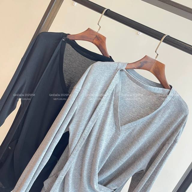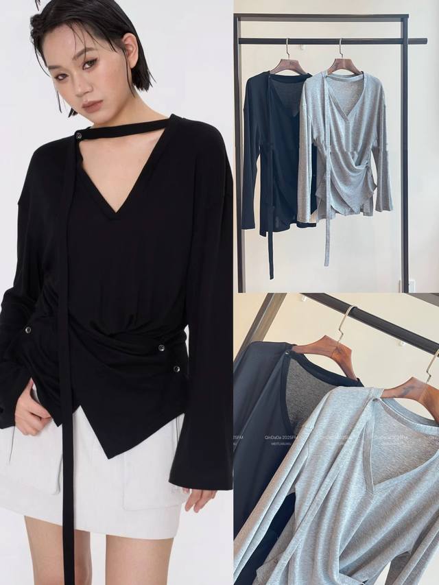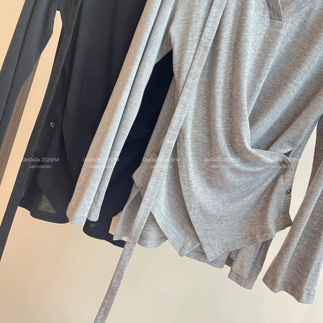 Heavy Tencel wool bottoming shirt 2 colors! New early autumn style multiple wearing loose Tencel wool V-neck pleated long-sleeved top women's thin 2 colors gray, black Smlxl