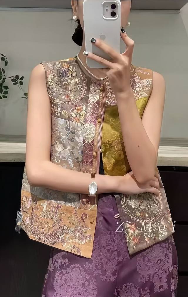 Heavy-duty exquisite Chinese jacquard vest. This vest is exquisitely embroidered