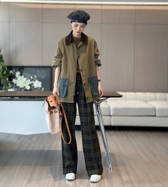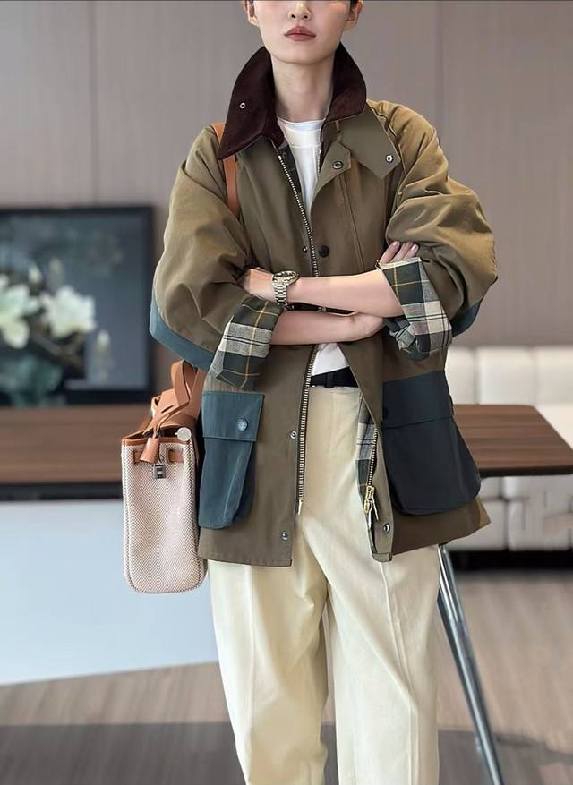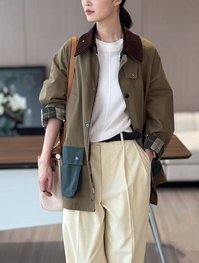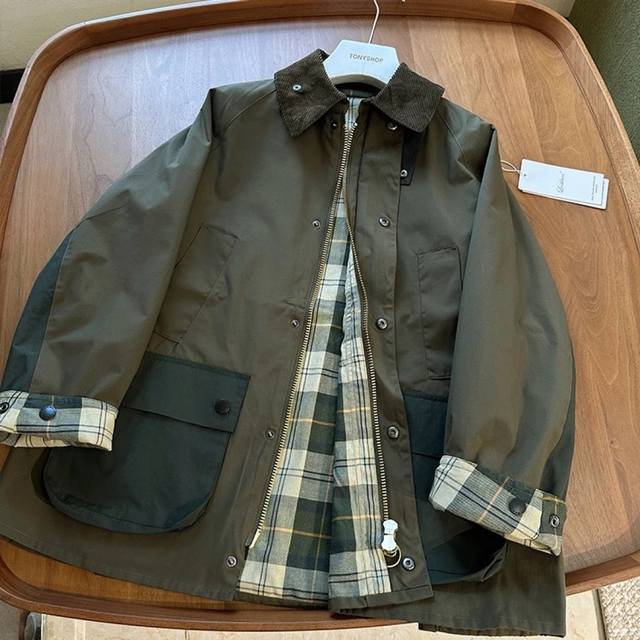 Heavyweight British retro style jacket! Strong product and heavy recommendation! High-end contrast color plaid lining, corduroy collar silhouette jacket Corduroy lapel contrast color unwaxed jacket Retro workwear style slim autumn and winter new jacket, Smlxl