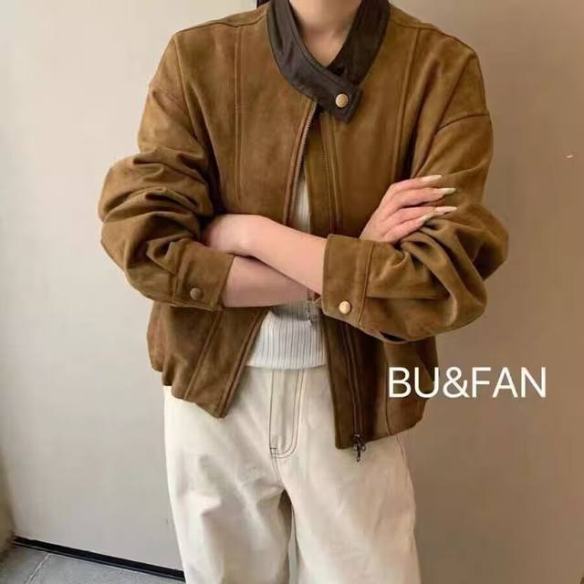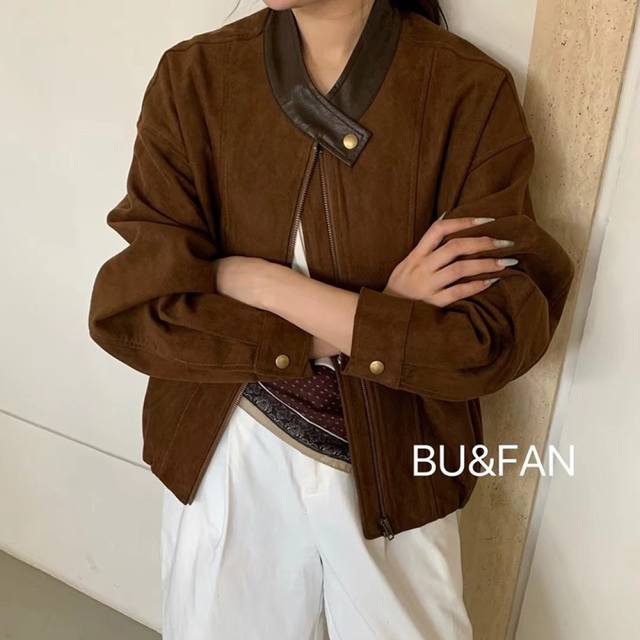 Heavyweight Korean style all-match leather deerskin coat with soft texture and high-end feel. The collar design is unique and matched with metal buttons, which makes it exquisite. The version is loose and short, which is very friendly to all body shapes and can easily create a casual and fashionable style. Smlxl