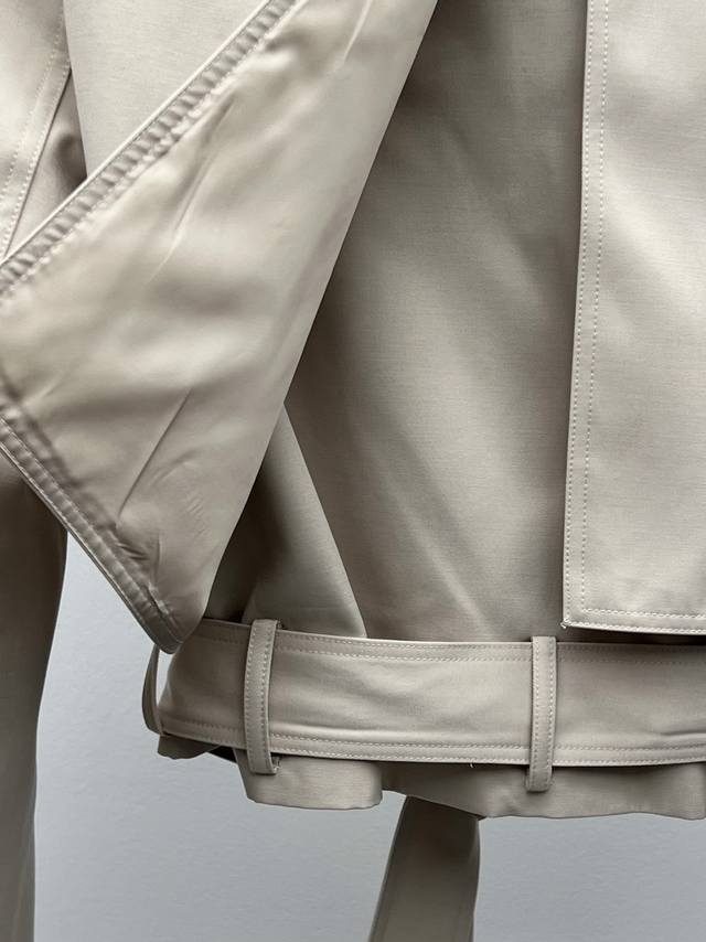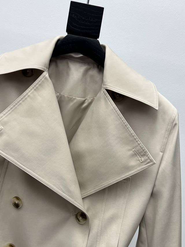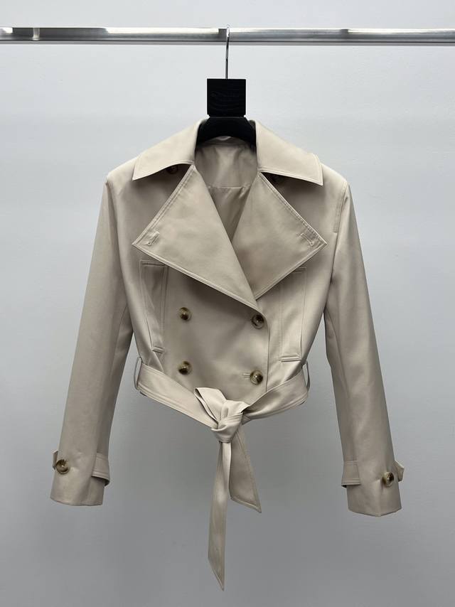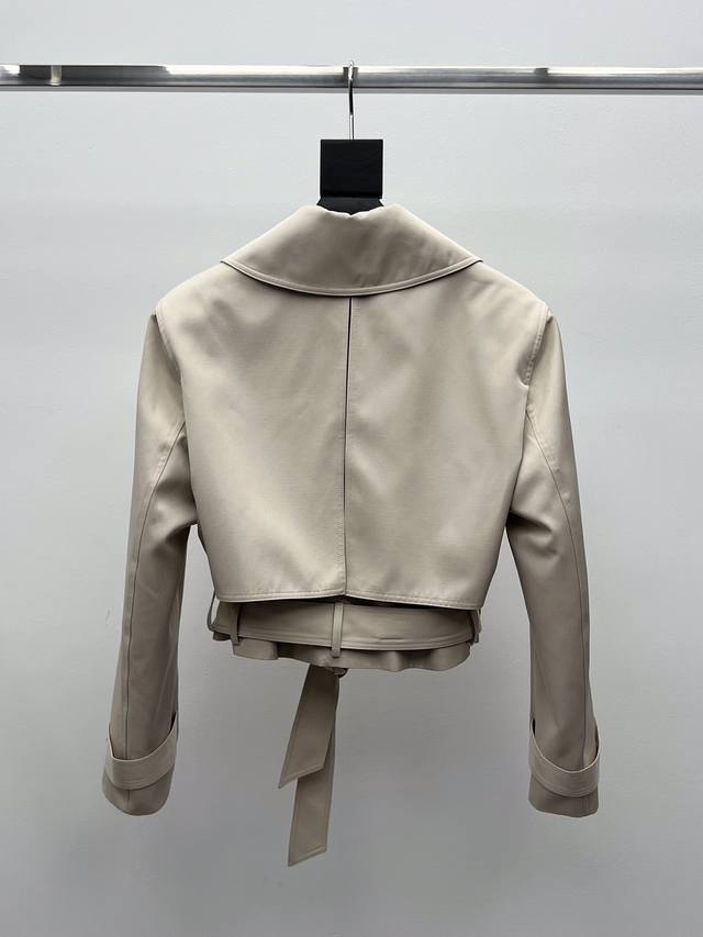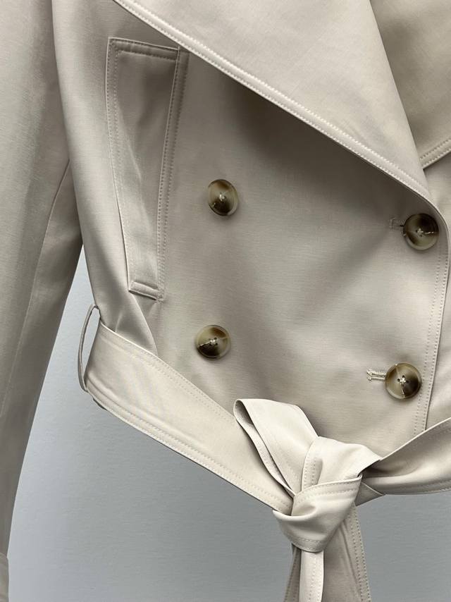 Helsa's new Office Lady series creates practical and elegant pieces for women. This short trench coat features an oversized padded shoulder lapel design, double-breasted closure, and a belted waist for a slimming effect. It can be paired with trousers or skirts for a sophisticated yet feminine look.