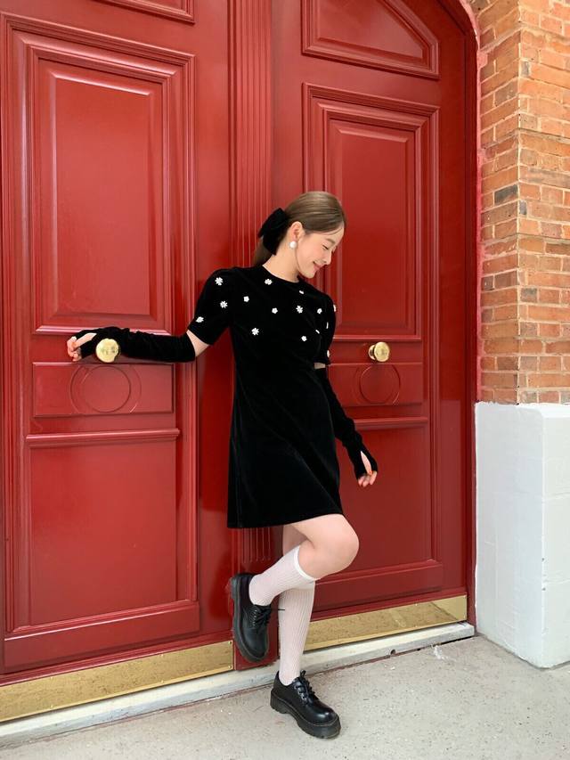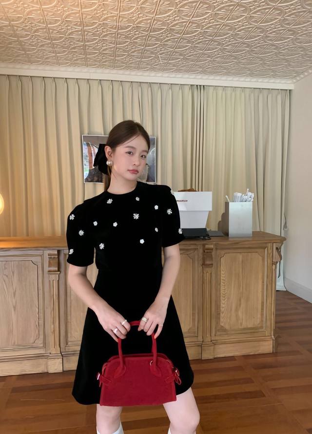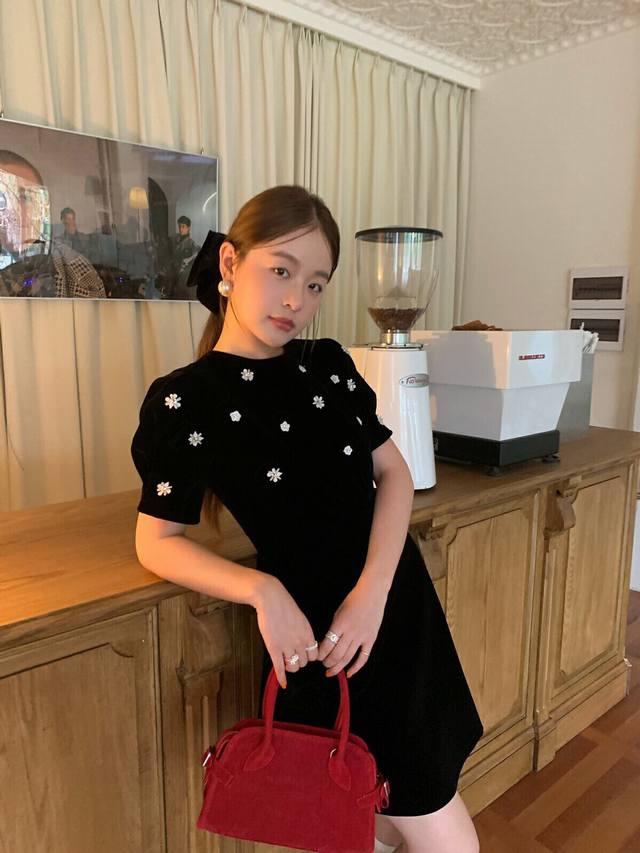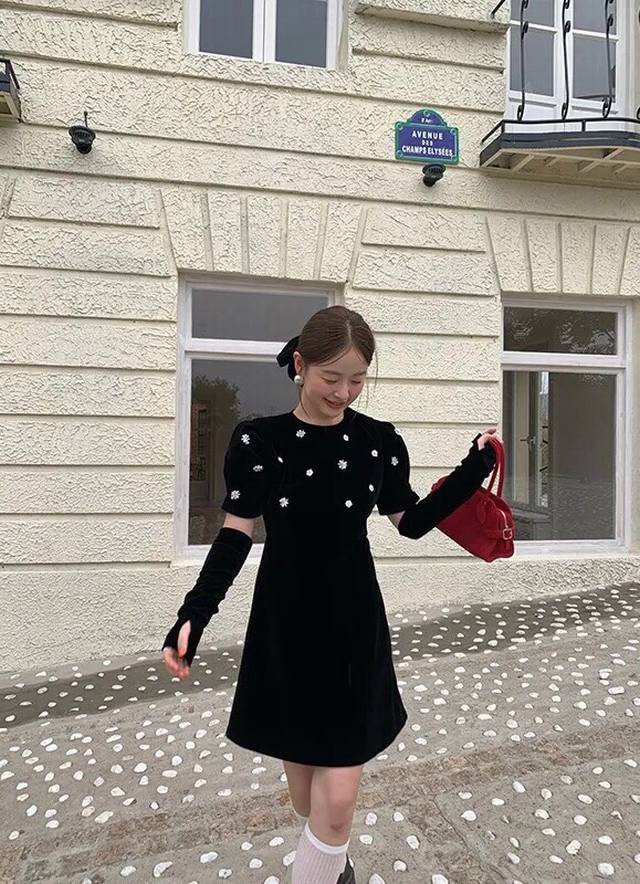 Hepburn-style beaded floral velvet A-line dress DDD Smlp DDD
