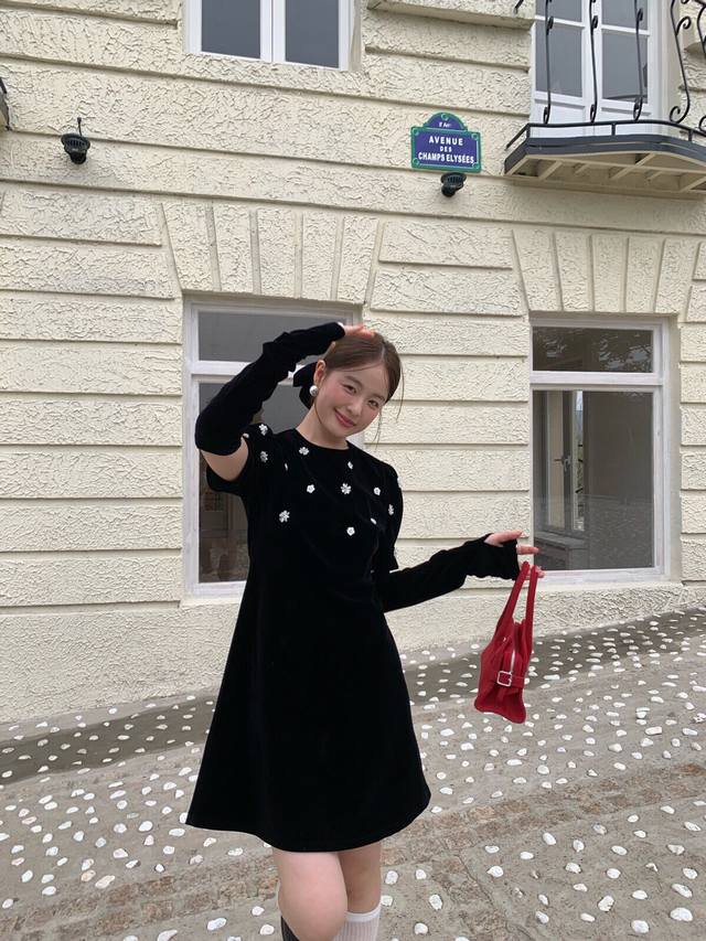 Hepburn-style beaded floral velvet A-line dress Smlp DDD