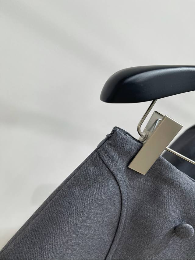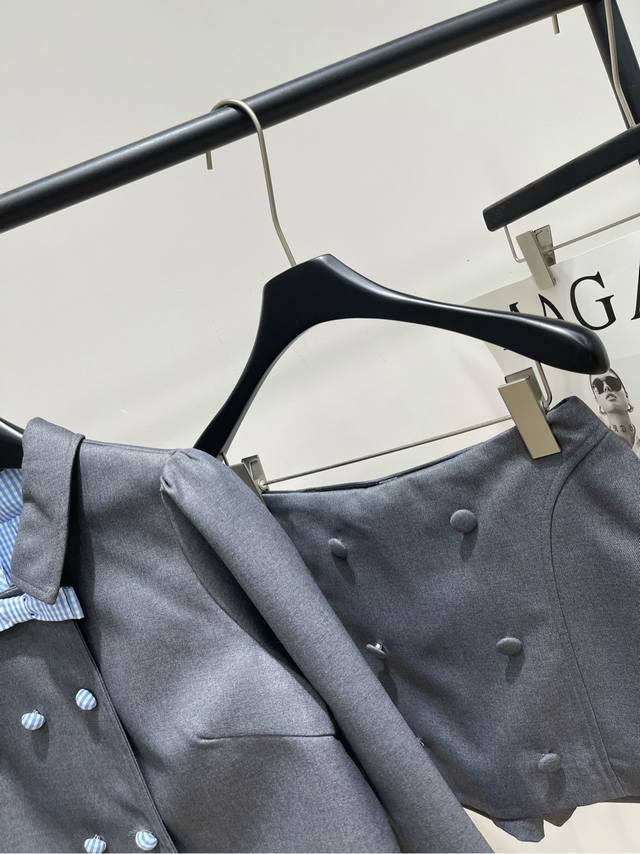 Her Grey Bow-Tie Double-Breasted Suit Jacket and Skirt