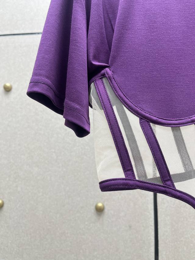 / Herringbone mesh patchwork short-sleeved top! Tencel blend, three colors, S, M,