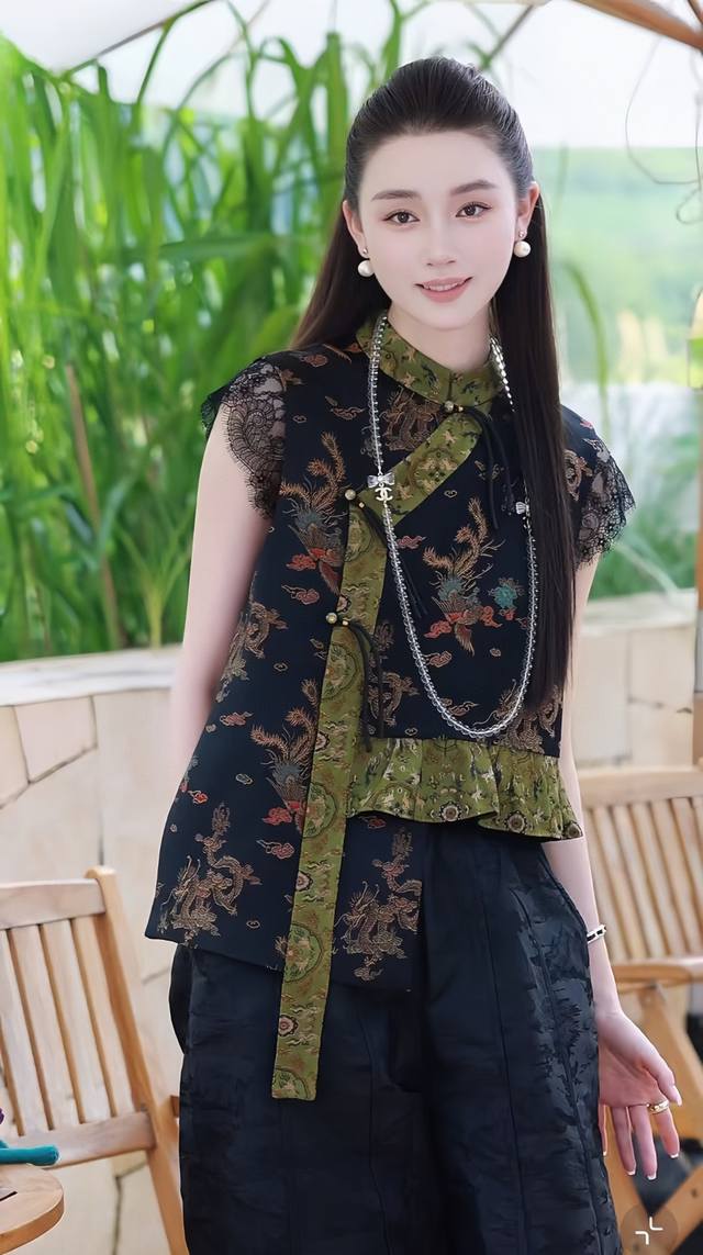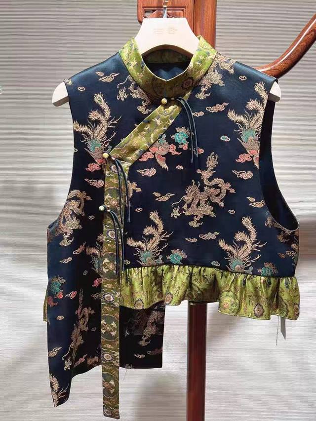 High quality, hot item, new Chinese style high-end irregular vest with oblique collar and button design, exquisite pattern trim, exquisite embroidery pattern, elegant charm and unique ingenuity in details, 4 sizes Smlxl