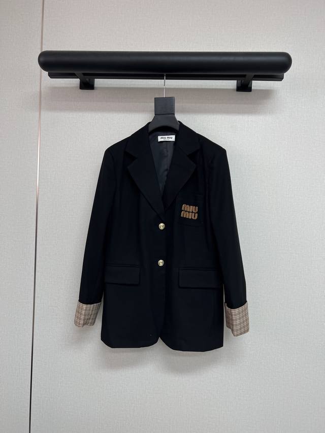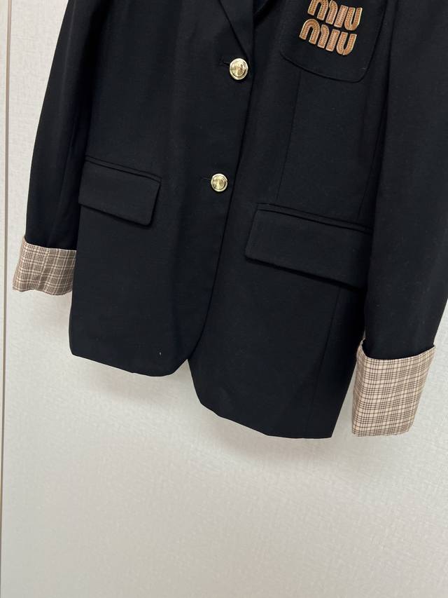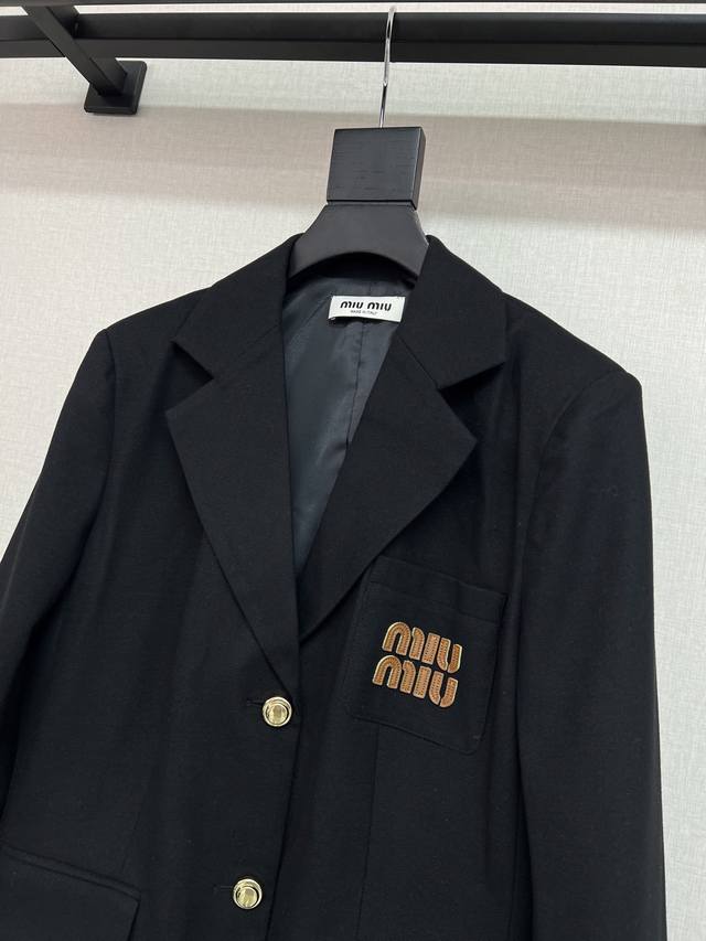 High quality Miumiu 2025 autumn and winter lapel suit with letter embroidery de