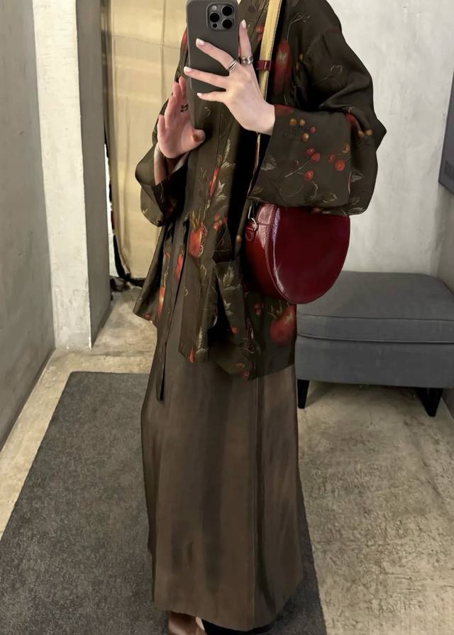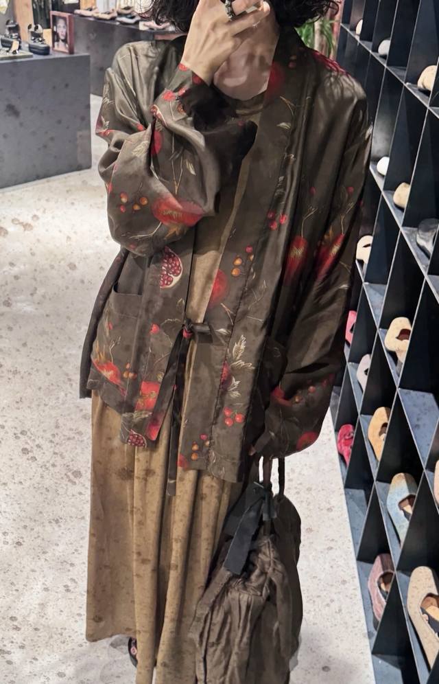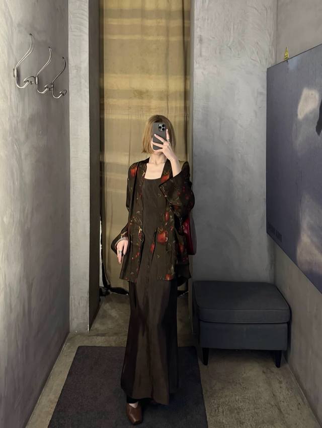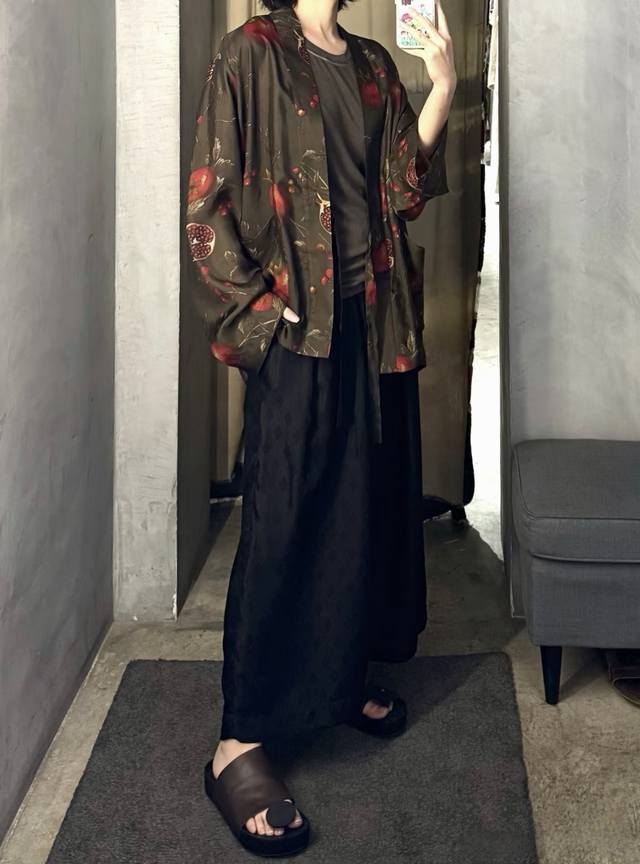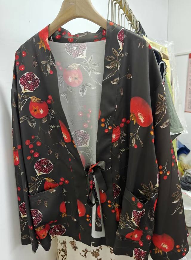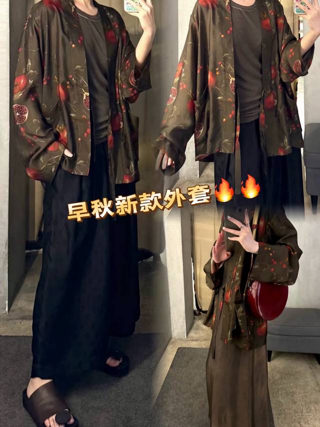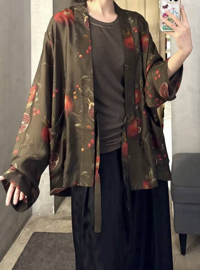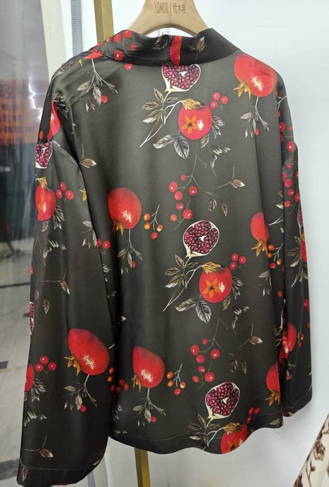 High quality! New early autumn lazy and relaxed casual pomegranate flower silk print plant dirty dyed robe, classic retro simple commuting! Loose and not picky, simple and generous all-match top Smlxl