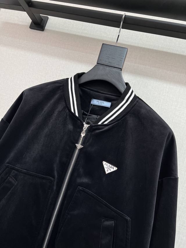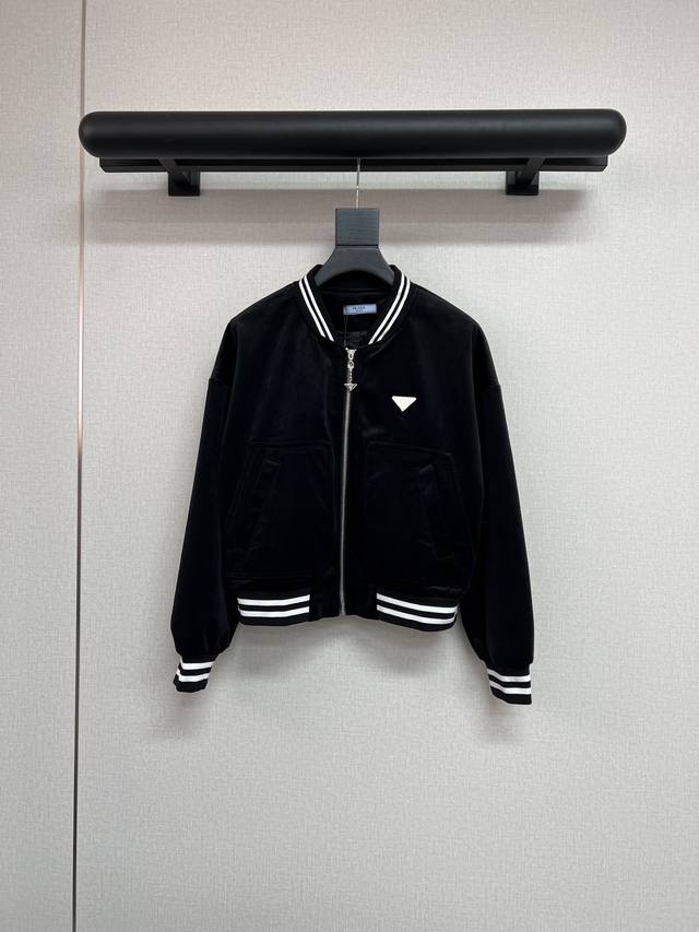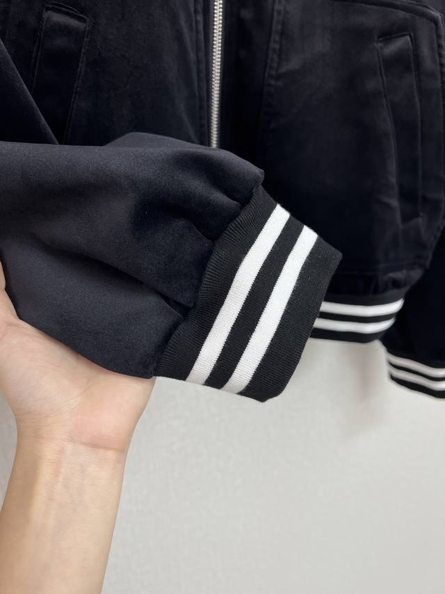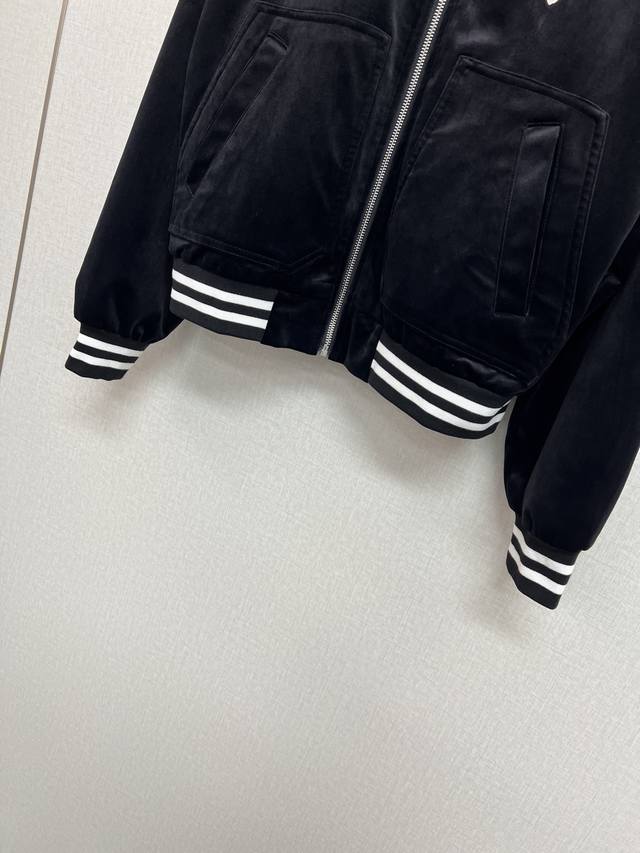 High quality pard*25 years series autumn and winter new baseball jacket velvet short jacket splicing stripes thread three-dimensional cutting slimming elongated body proportions two colors Sml