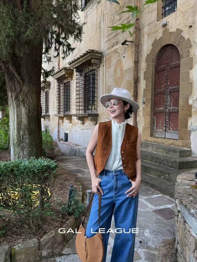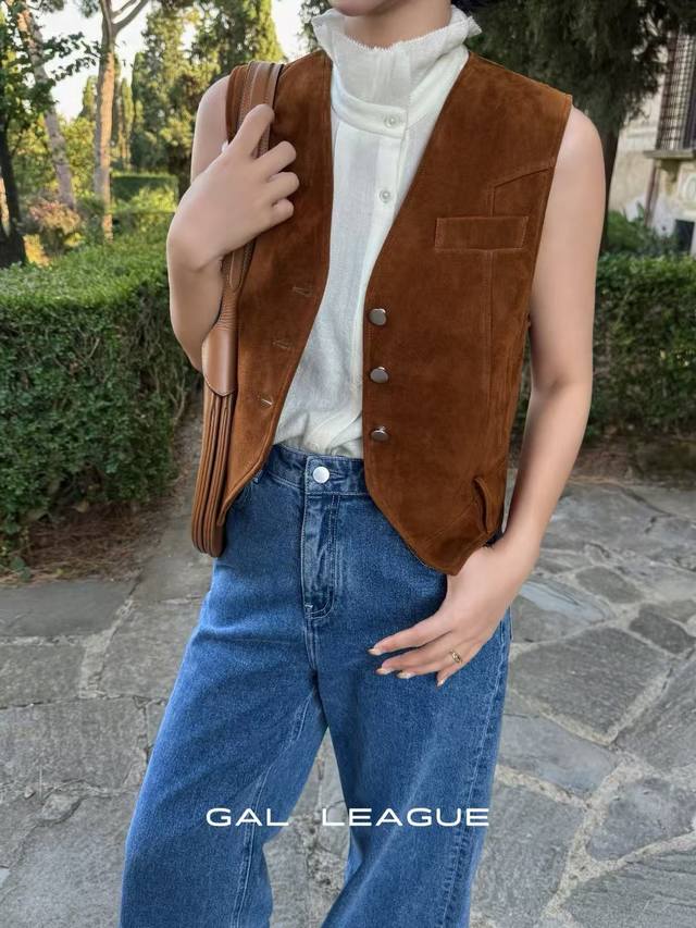 High-end European custom sheepskin vest retro V-neck single-breasted! Smlxl