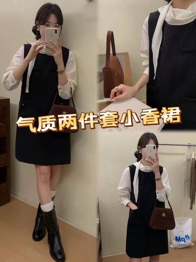 High-end French shirt Chanel style dress, the most classic skirt shape, high-end tailoring, simple H-shaped silhouette, classic small round neck sleeveless design, just the right shoulder width and flesh-covering armhole arc, comfortable and high, and optimize the head-to-shoulder ratio, elegant and skin-revealing length is very friendly Smlxl