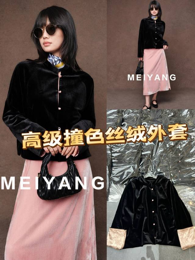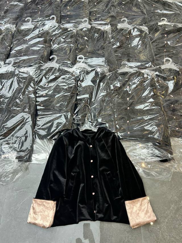 High-end new Chinese classical velvet black swan coat contrasting jacquard cheongsam buttoned top Black velvet + new Chinese bright pink jacquard + pink cheongsam buttons From the fabric to the version accessories, it fully reflects the connotation and artistic conception of the new Chinese style. It reveals the grandeur of the national show everywhere, without any tacky feeling. Loose raglan sleeve version, generous, slimming without swelling, not picky about body shape Smlxl