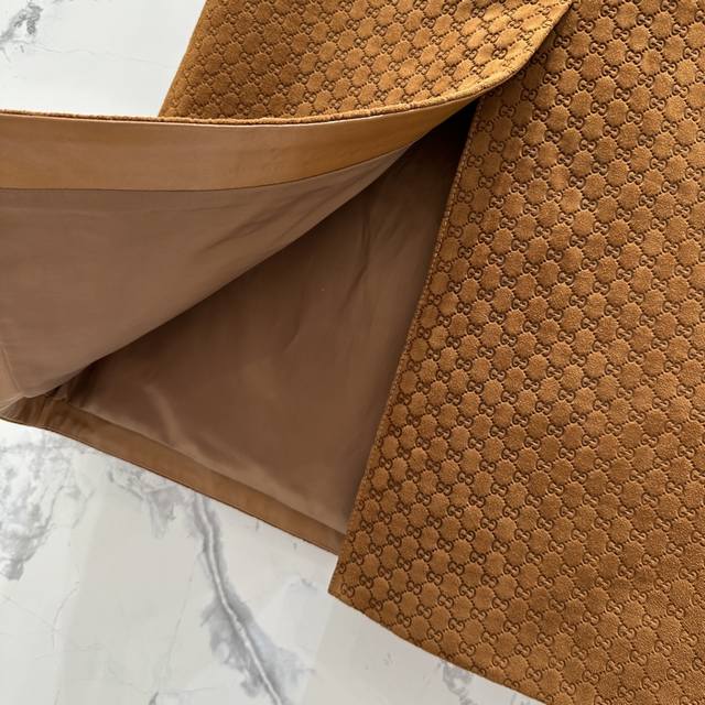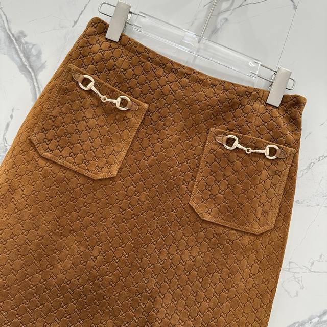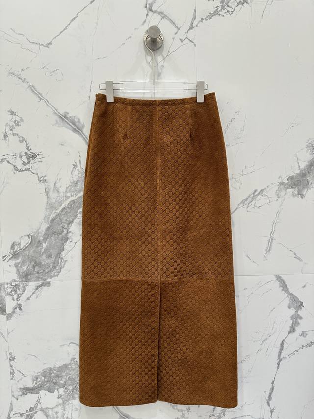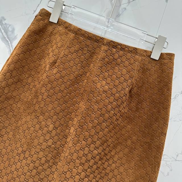 High-end original quality Guc*I25 early autumn new product positioning embossed logo deerskin goddess leather long skirt! Original development and customization of the full positioning printed logo is absolutely stunning! The original high-waist version is domineering and interprets the sweet and cool girl temperament! The back slit design is refreshing, seductive, simple and stylish! It looks great with any T-shirt or shirt! The original positioning embossed logo is so beautiful that it has no friends. The perfect workmanship and quality are reflected in the details! All colors are S-Xl.