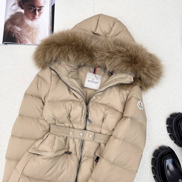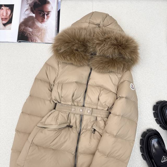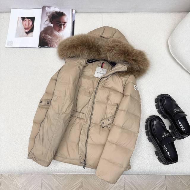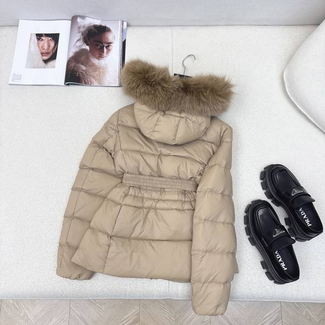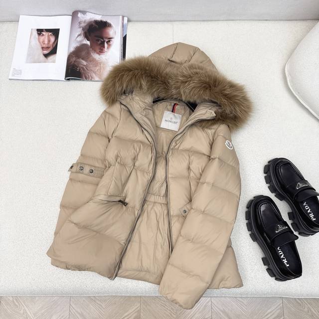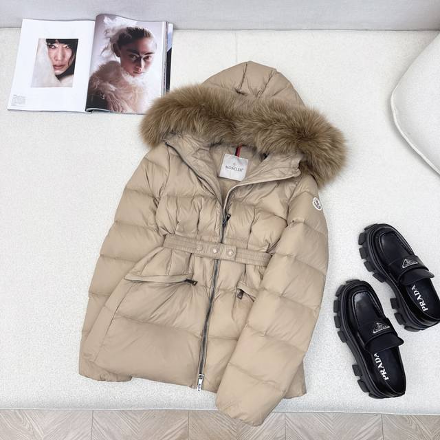 High-end original quality Mc 25Ss Autumn/Winter latest classic Boedic hooded short down jacket, custom-made imported raccoon fur collar, genuine product development, hardware accessories, all details are fully processed, perfect waist-cinching design, amazing fit, a must-have for goddesses, versatile, fashionable and handsome, national standard 90% white goose down filling, original counter version, memory silk fabric, textured, structured, warm, avoids bulkiness, looks stunning on, four colors 1 2 3 4 Size S: shoulder width 40cm, bust 90cm, length 60cm, manual measurement may have errors. DDD