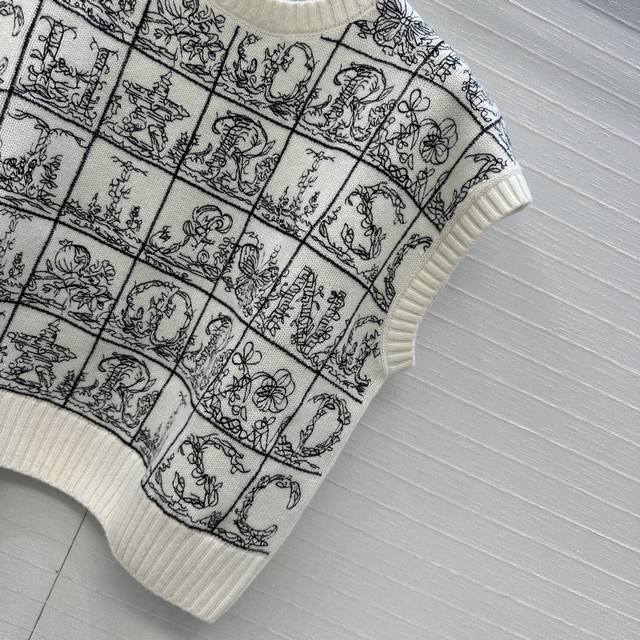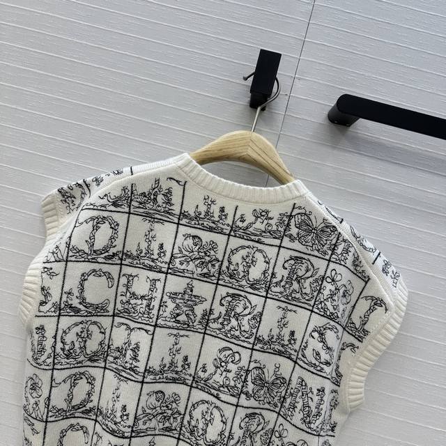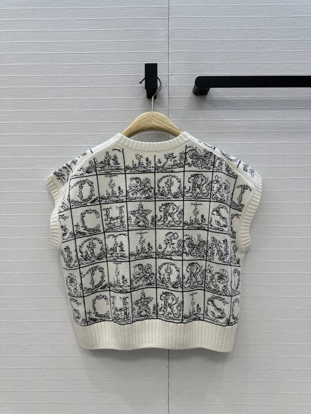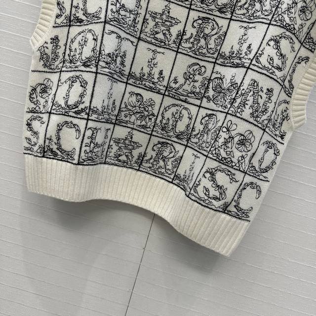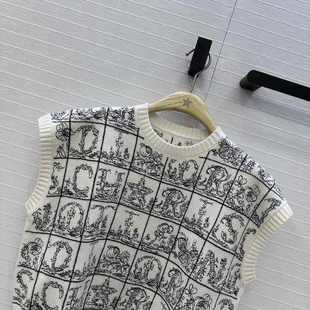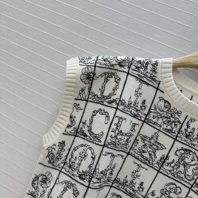High-end original quality Miss D* limited new arrival! Heavy-duty Alphabet letter embroidered round neck vest top, made with custom imported cashmere yarn for a soft, delicate, and comfortable feel! Features front and back positioning embroidery, classic H-line cropped style for a super slimming effect! An elegant and versatile piece! A must-have for sophisticated women! Two colors, three sizes, size 36: Bust 106cm, Length 48cm. DDD