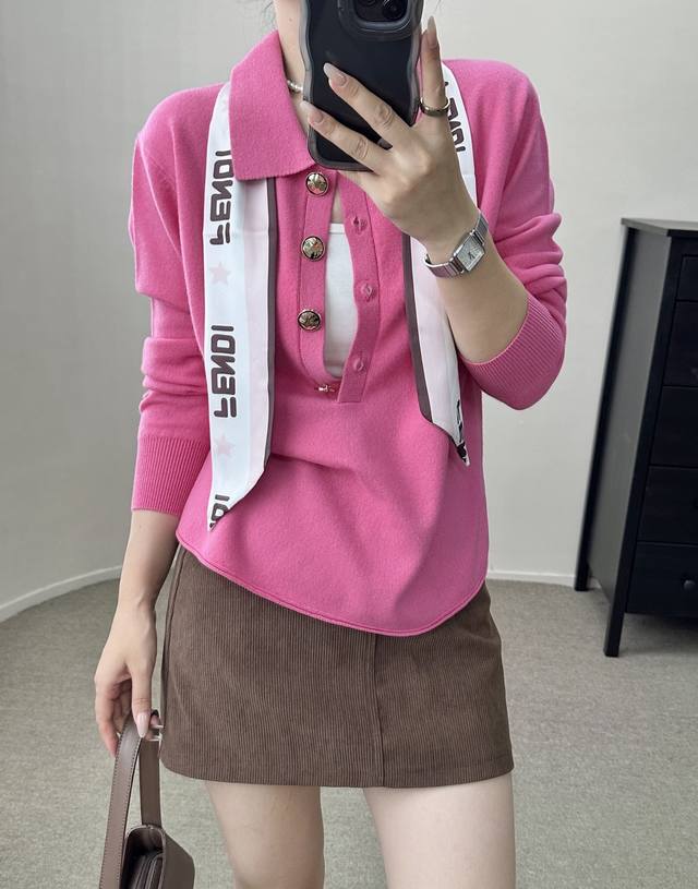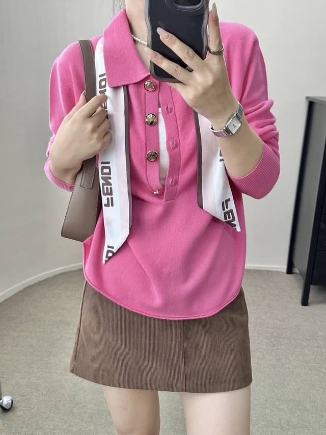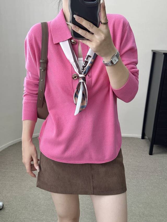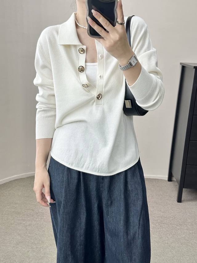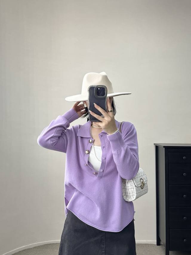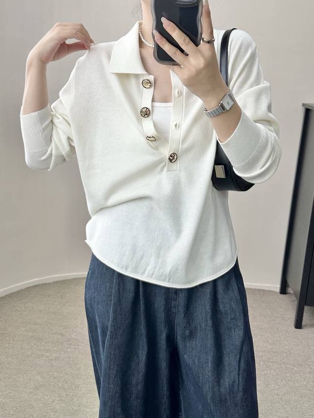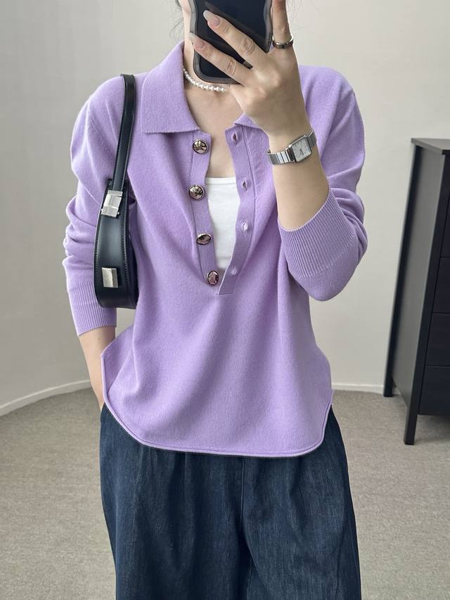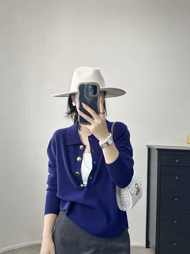 / High-end temperament commuting polo collar retro gold button wool sweater autum