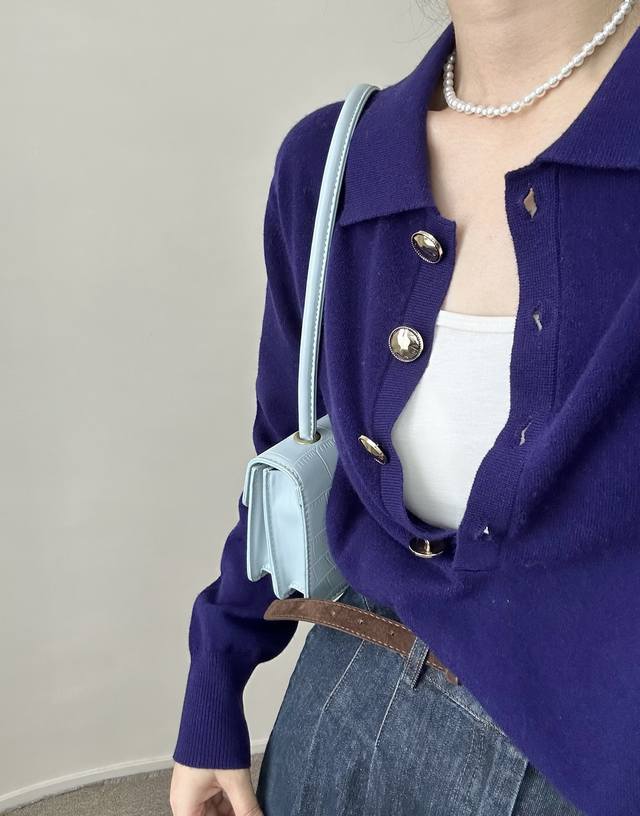 High-end temperament commuting polo collar retro gold button wool sweater autum