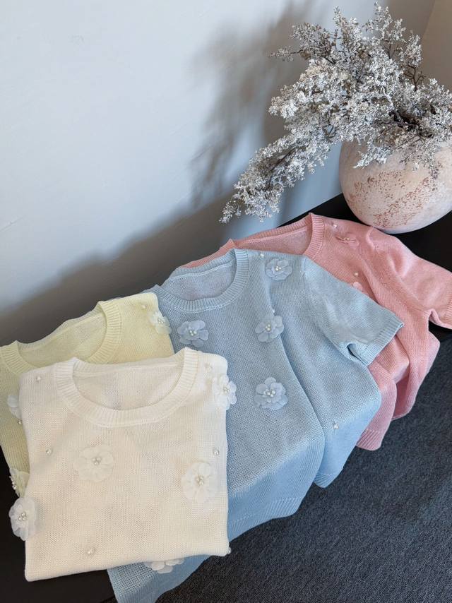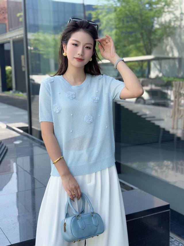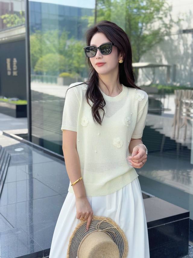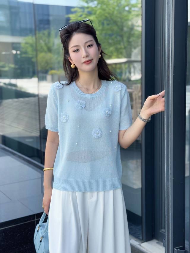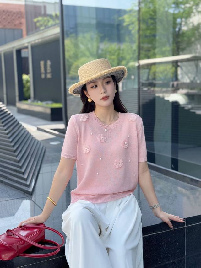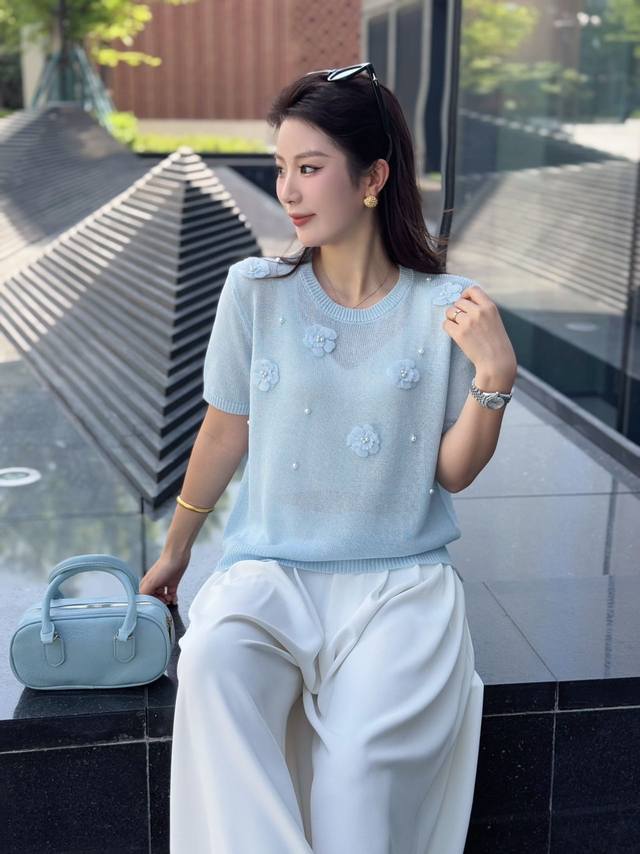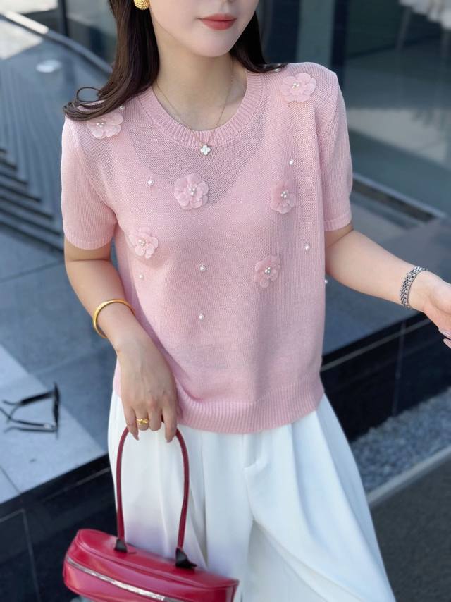 High-end three-dimensional flower sweater new style short-sleeved three-dimensi