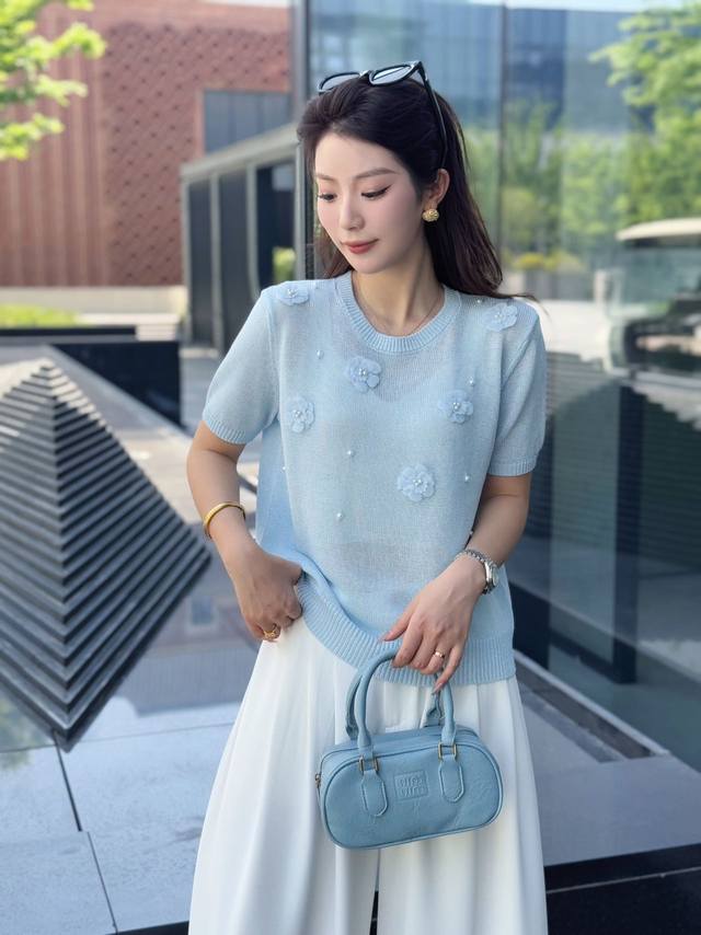 / High-end three-dimensional flower sweater new style short-sleeved three-dimensi